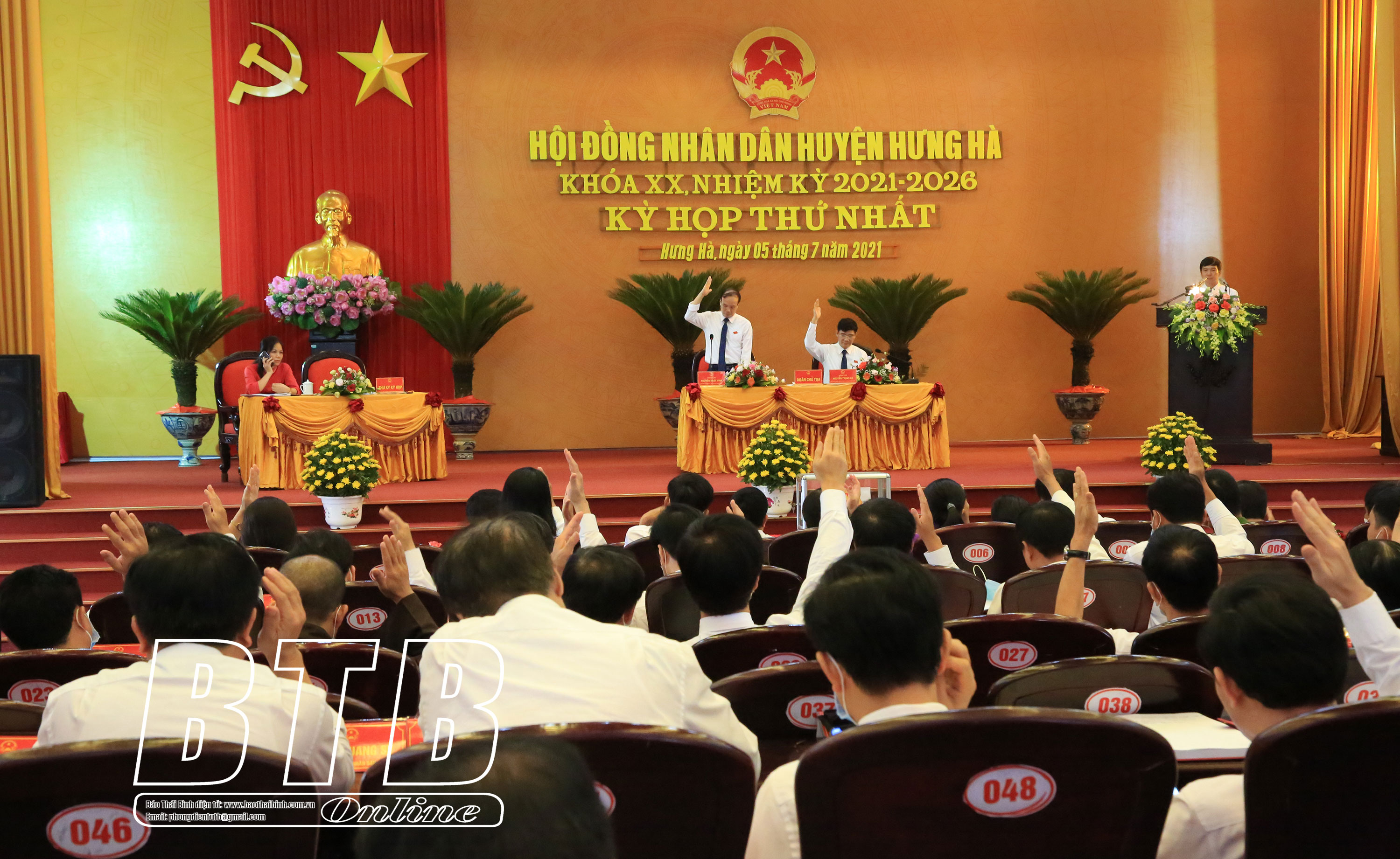 Tại kỳ họp, Ủy ban bầu cử huyện Hưng Hà đã báo cáo kết quả bầu cử đại biểu HĐND huyện và kết quả xác nhận tư cách đại biểu HĐND huyện khóa XX, nhiệm kỳ 2021 - 2026. Theo đó, cuộc bầu cử trên địa bàn huyện đã thành công tốt đẹp, bảo đảm công bằng, dân chủ, đúng luật định. Tỷ lệ cử tri đi bầu cử đạt 98,48%; đã bầu ra 40 đại biểu HĐND huyện khóa XX, nhiệm kỳ 2021 - 2026. Tại kỳ họp, HĐND huyện đã tiến hành bầu các chức danh: Chủ tịch, Phó Chủ tịch HĐND huyện; trưởng ban, phó trưởng các ban của HĐND huyện; Chủ tịch, Phó Chủ tịch UBND huyện; ủy viên UBND huyện; hội thẩm Tòa án nhân dân huyện. Kết quả, đồng chí Nguyễn Trọng Lộ, Phó Bí thư thường trực Huyện ủy, Chủ tịch HĐND huyện khóa XIX được bầu giữ chức vụ Chủ tịch HĐND huyện khóa XX, nhiệm kỳ 2021 - 2026; đồng chí Nguyễn Xuân Dương, Phó Bí thư Huyện ủy, Chủ tịch UBND huyện khóa XIX được bầu giữ chức vụ Chủ tịch UBND huyện khóa XX, nhiệm kỳ 2021 - 2026.