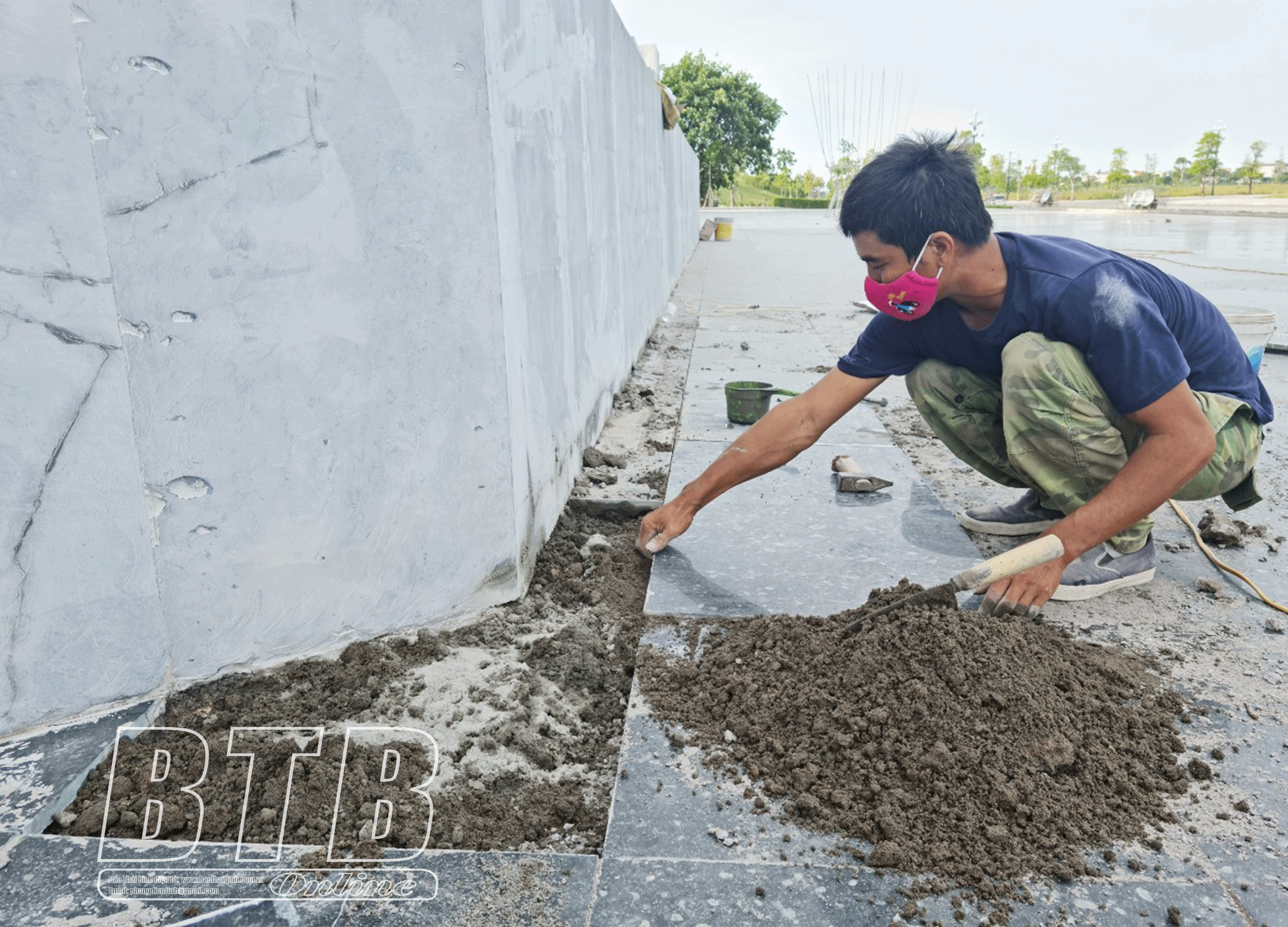 Công nhân sửa chữa, khắc phục những tồn tại phát sinh trong quá trình sử dụng trước khi bàn giao, đưa công trình hạ tầng Quảng trường Thái Bình vào sử dụng.
