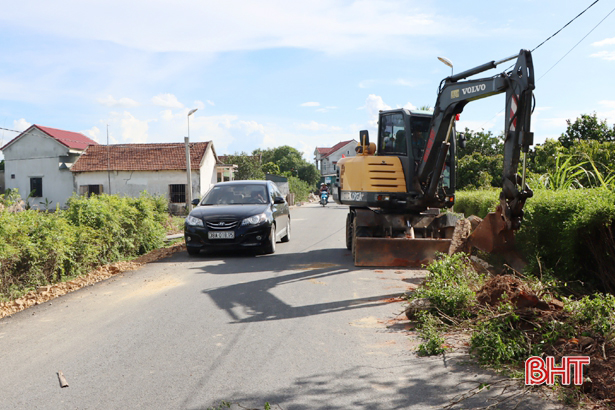 Cẩm Xuyên huy động máy móc mở rộng các tuyến đường