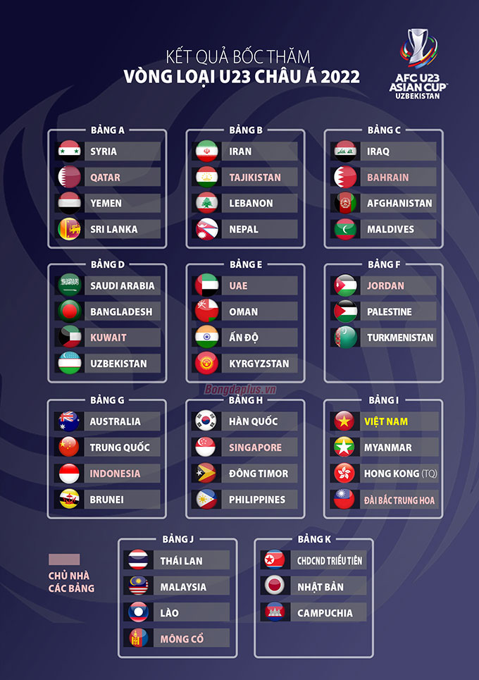 Kết quả bốc thăm vòng loại U23 châu Á 2022
