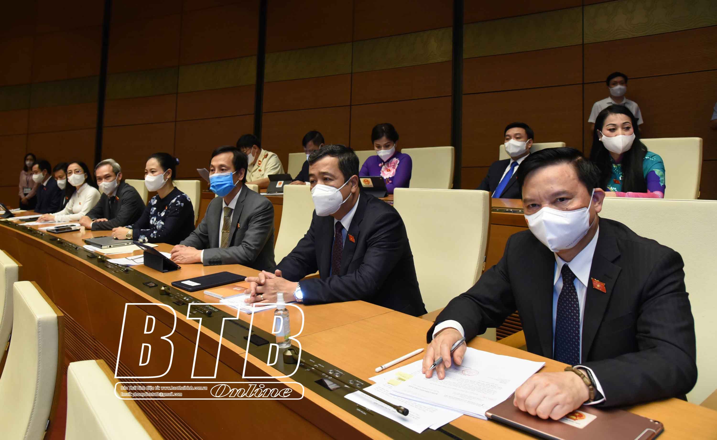 Các vị đại biểu Quốc hội tỉnh Thái Bình dự khai mạc kỳ họp. Ảnh: VŨ SƠN TÙNG