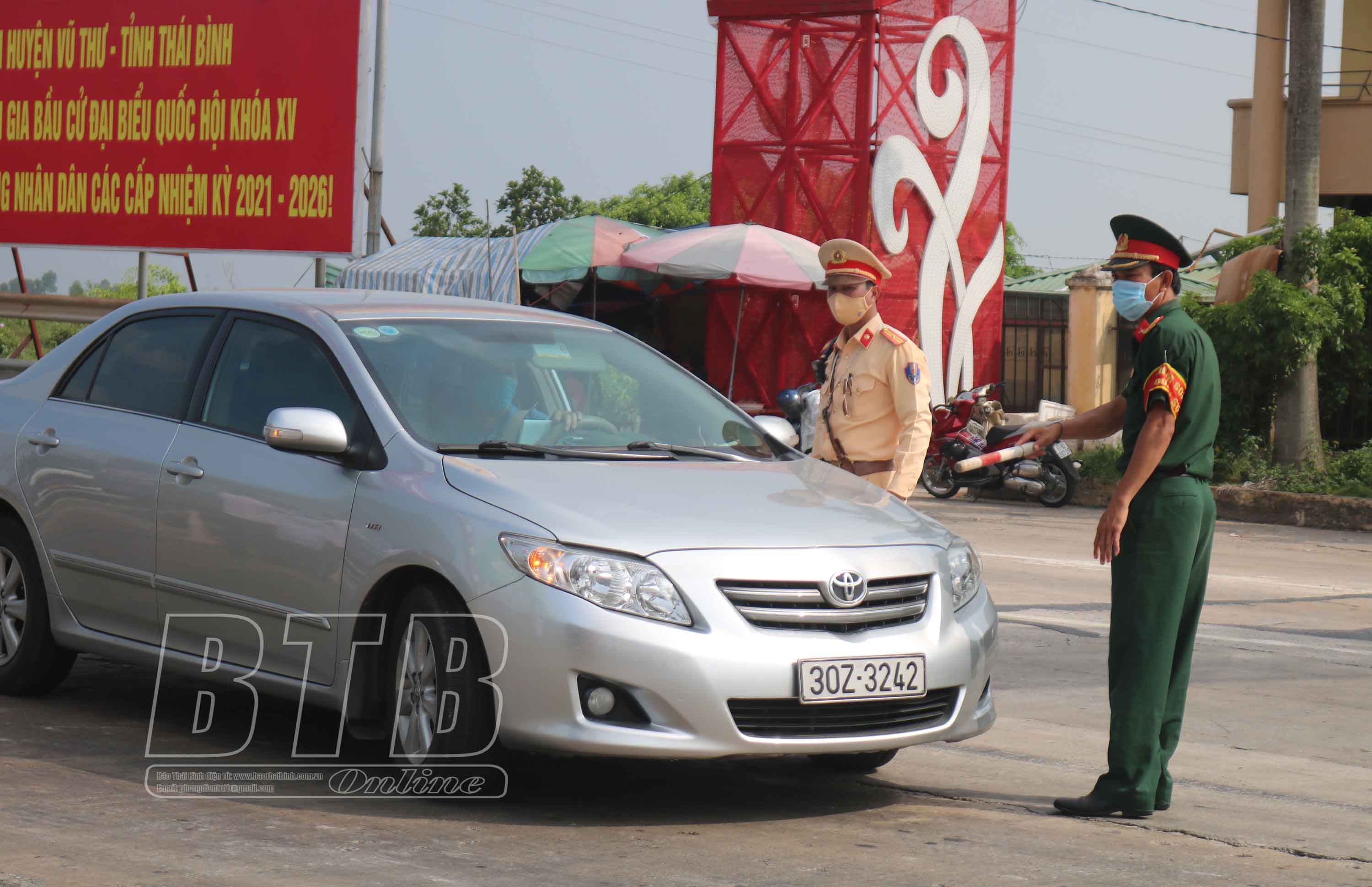 Đồng chí Nguyễn Khắc Thận, Phó Bí thư Tỉnh ủy, Chủ tịch UBND tỉnh,Trưởng ban Chỉ đạo phòng, chống dịch Covid-19 tỉnh cùng các đồng chí lãnh đạo tỉnh kiểm tra, chỉ đạo công tác phòng, chống dịch tại chốt kiểm soát dịch cầu Tân Đệ (Vũ Thư).