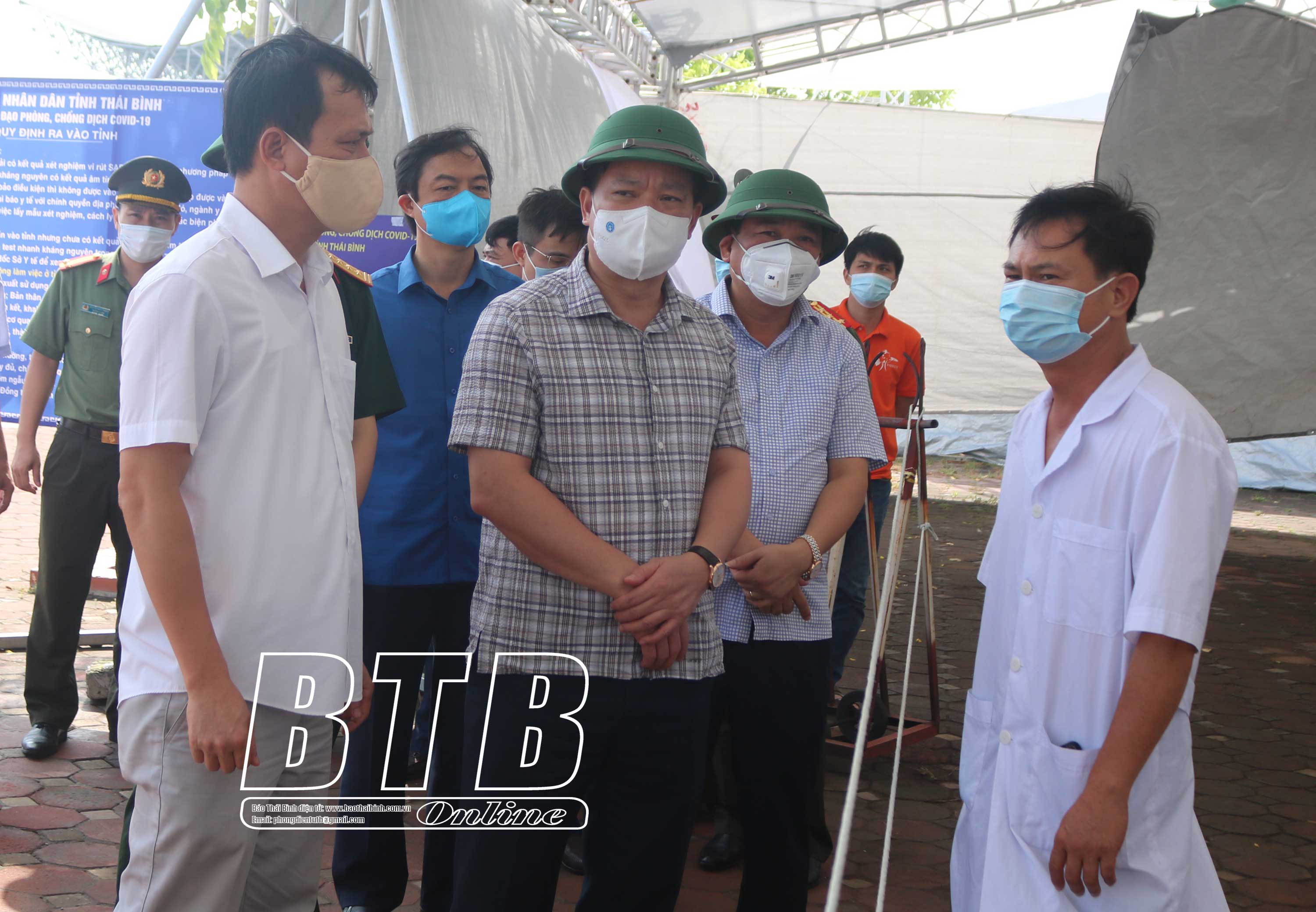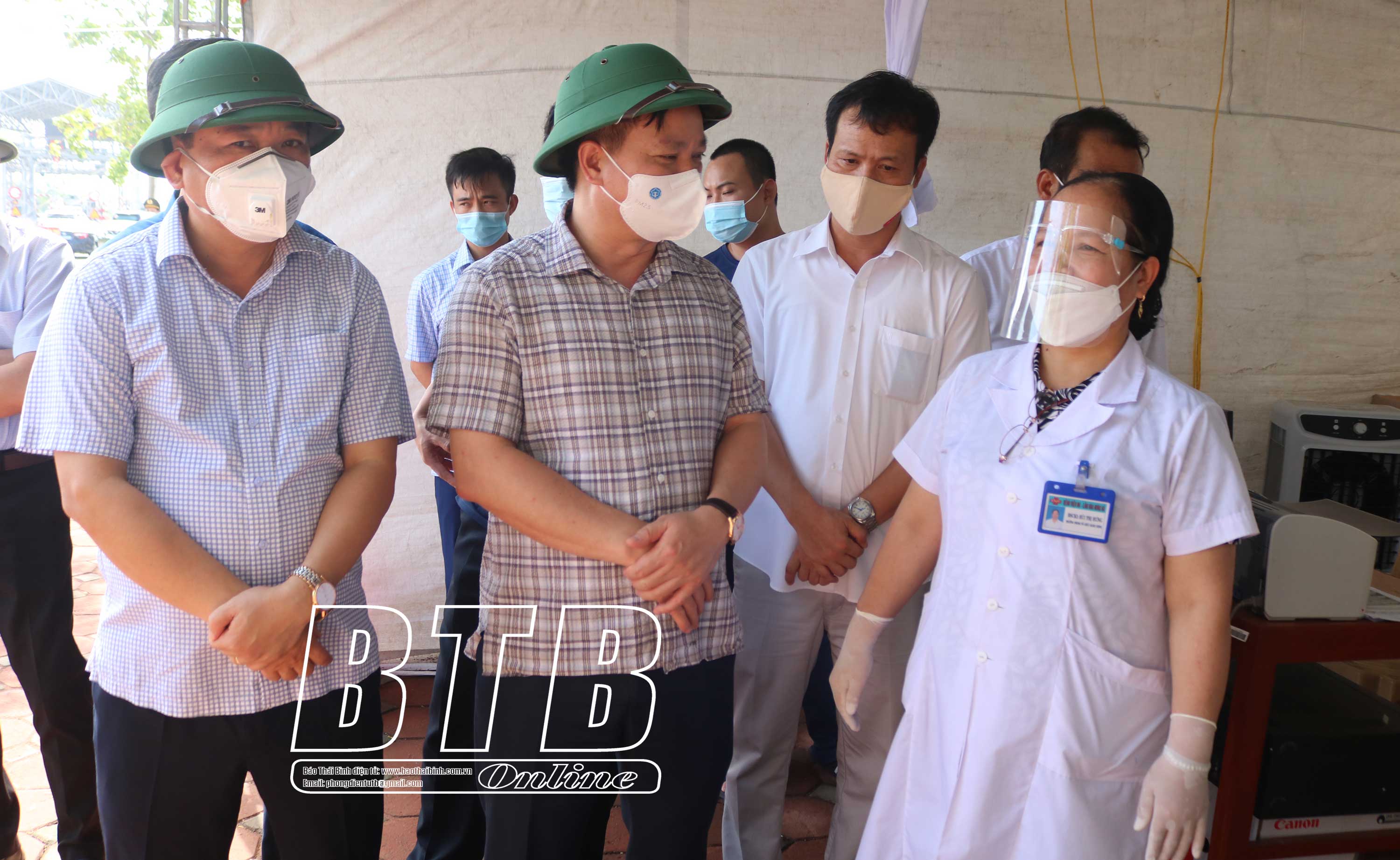 Đồng chí Nguyễn Khắc Thận, Phó Bí thư Tỉnh ủy, Chủ tịch UBND tỉnh, Trưởng ban Chỉ đạo phòng, chống dịch Covid-19 tỉnh yêu cầu lực lượng y tế tại chốt kiểm soát dịch Covid-19 cầu Thái Hà (Hưng Hà) thực hiện nghiêm các quy định về phòng, chống dịch.