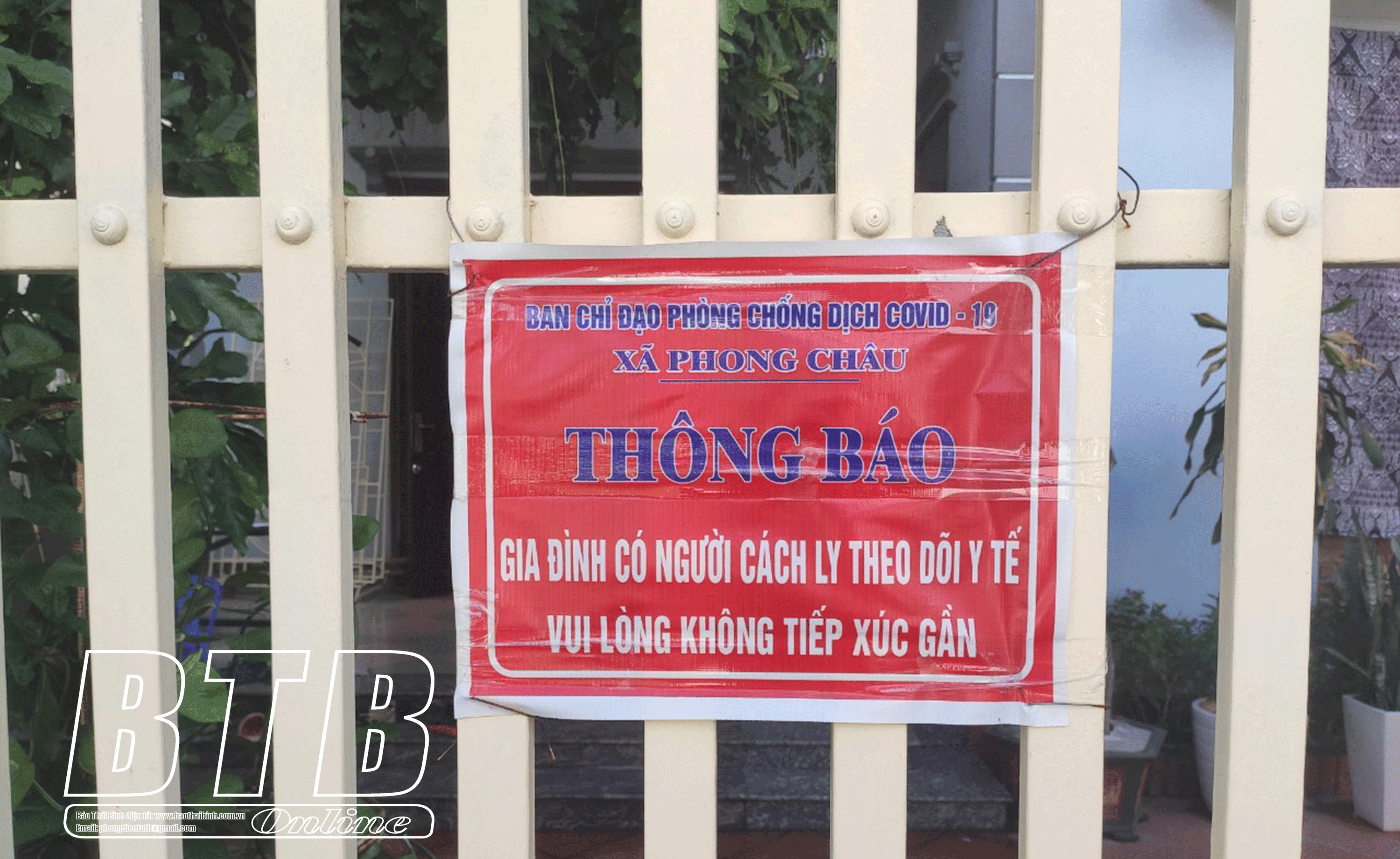 Biển báo gia đình có người cách ly tại nhà ở xã Phong Châu (Đông Hưng).