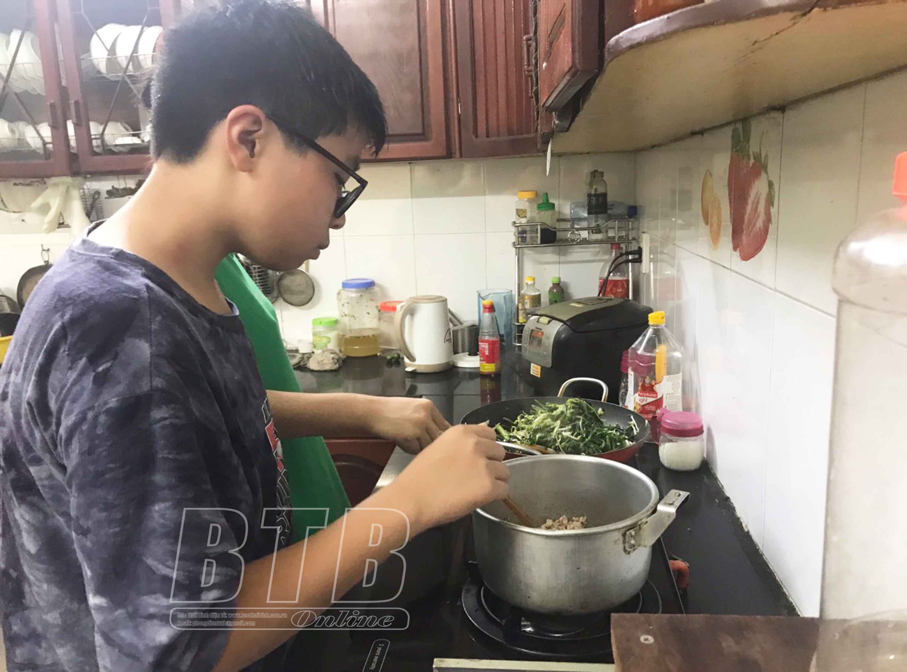Em Phạm Phương Thảo, Trường Tiểu học Kim Đồng (thành phố Thái Bình) chia sẻ: Con tập làm việc nhà và trông em giúp bà, thường là đọc chuyện và hát cho em nghe để bà có thêm thời gian nghỉ ngơi bởi bà bị đau lưng, di chuyển khó khăn mà em bé lại rất hiếu động. Còn em Nguyễn Tiến Minh, Trường THCS Kỳ Bá (thành phố Thái Bình) cho biết: Em cùng chị nấu cơm giúp bố mẹ, giờ em đã có thể tự tin vào bếp một mình khi bố mẹ vắng nhà.