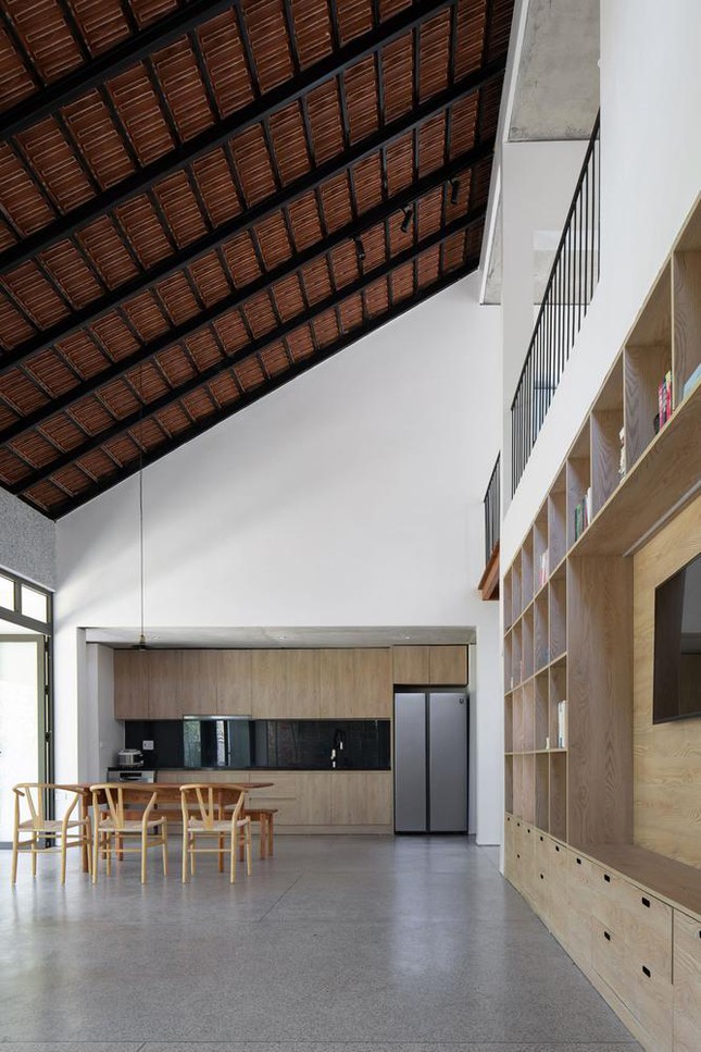 Với cách bố trí theo từng lớp như vậy sẽ tạo chiều sâu cho không gian ngôi nhà, khối không gian sinh hoạt chung là trung tâm được mở ra để tối đa hóa việc thông gió tự nhiên qua các hàng hiên dài, nhờ đó mà ánh sáng tự nhiên gián tiếp vào không gian cũng vừa phải, phù hợp hơn với không gian sống.