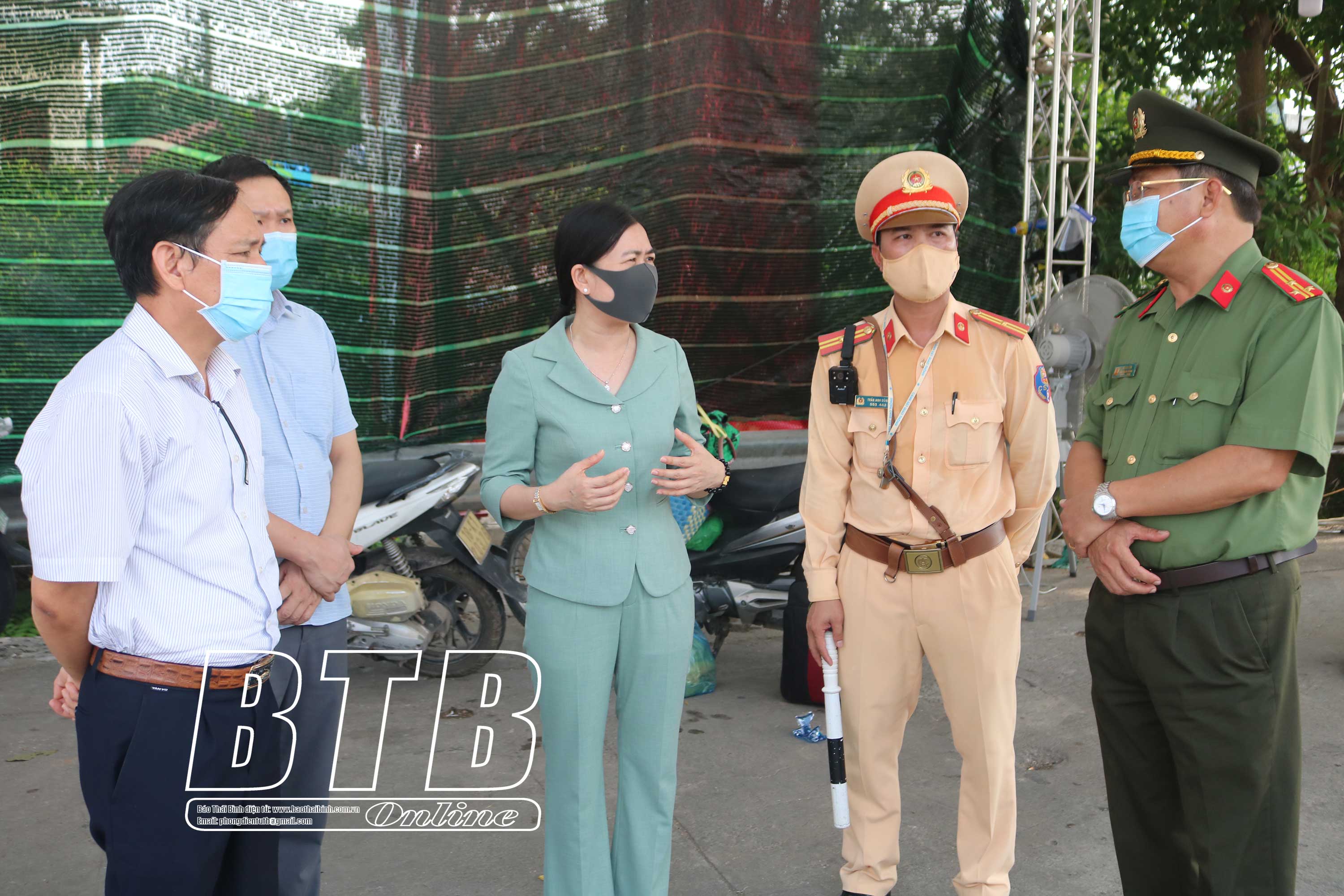 Đồng chí Trần Thị Bích Hằng, Tỉnh ủy viên, Phó Chủ tịch UBND tỉnh, Phó Trưởng ban thường trực Ban Chỉ đạo phòng, chống dịch Covid-19 tỉnh kiểm tra công tác phòng, chống dịch tại chốt kiểm soát dịch cầu Tân Đệ.