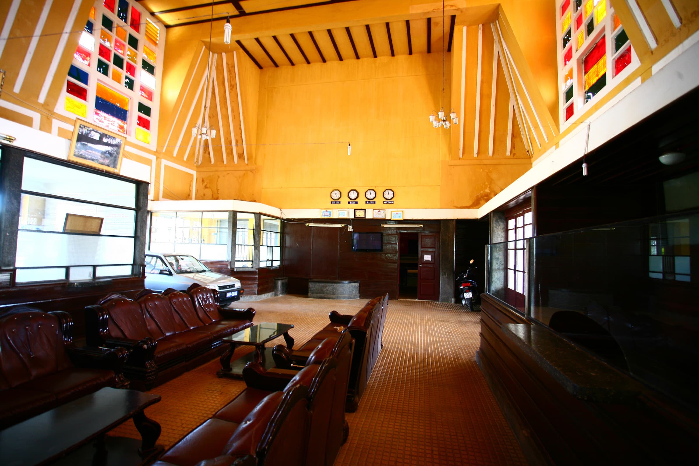 Không gian bên trong ga Đà Lạt tràn ngập ánh sáng tự nhiên với những ô cửa kính màu rực rỡ.