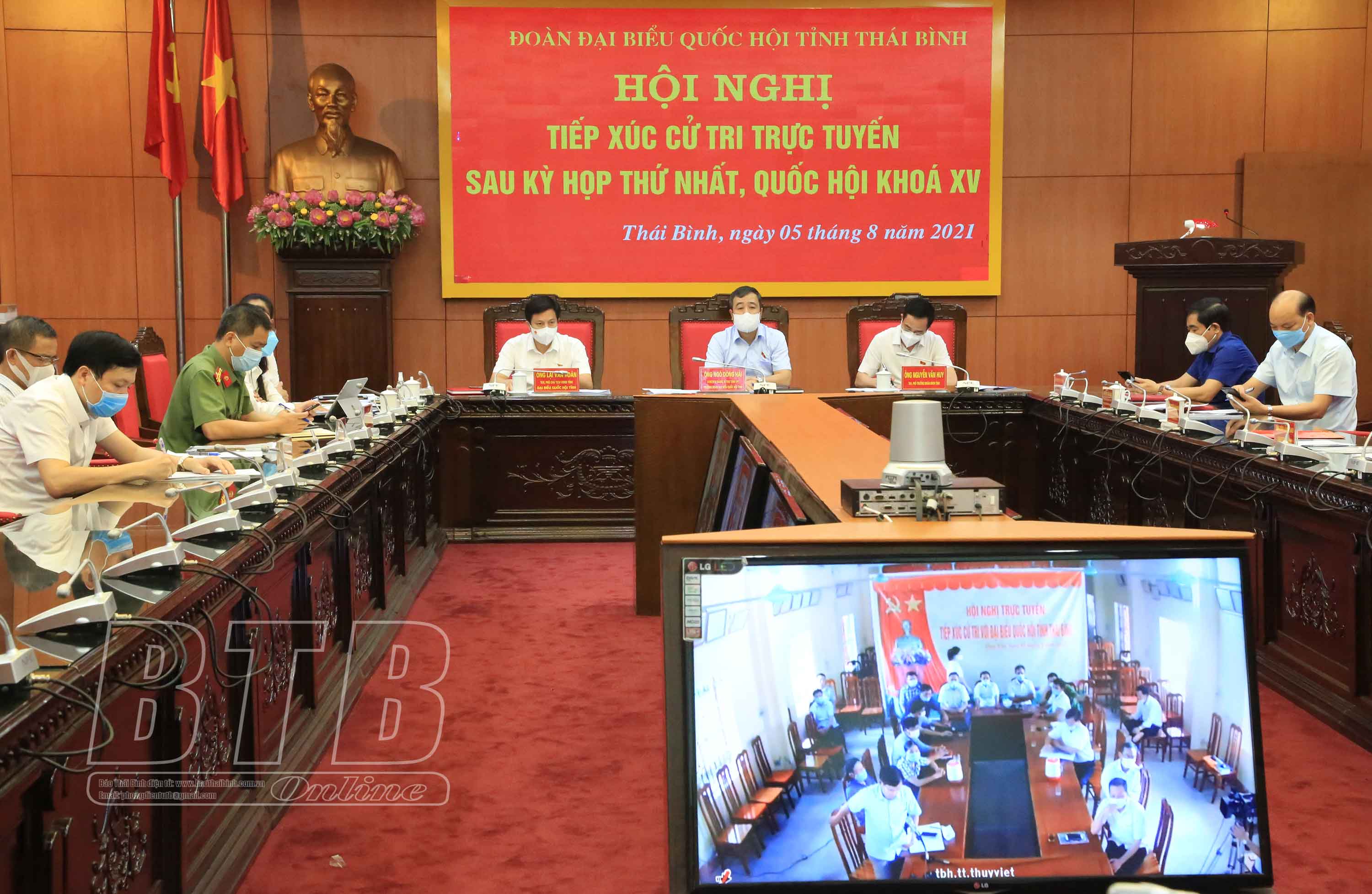 Sáng ngày 5/8, Đoàn đại biểu Quốc hội khóa XV tỉnh Thái Bình phối hợp với Ủy ban MTTQ tỉnh tổ chức hội nghị tiếp xúc giữa các vị đại biểu Quốc hội tỉnh với cử tri sau kỳ họp thứ nhất Quốc hội khóa XV bằng hình thức trực tuyến.