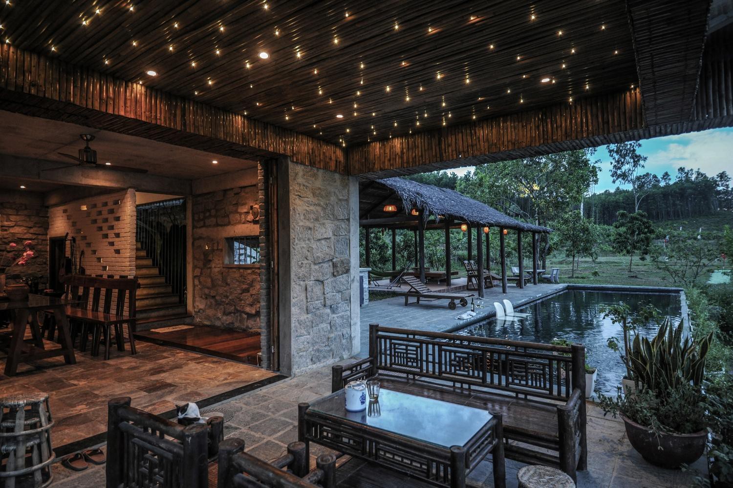 Cuối cùng là ngôi nhà không sơn tường mà chỉ sử dụng vật liệu từ đá tự nhiên, gỗ, tre, nứa tạo cảm giác gần gũi, thô mộc, hài hòa.