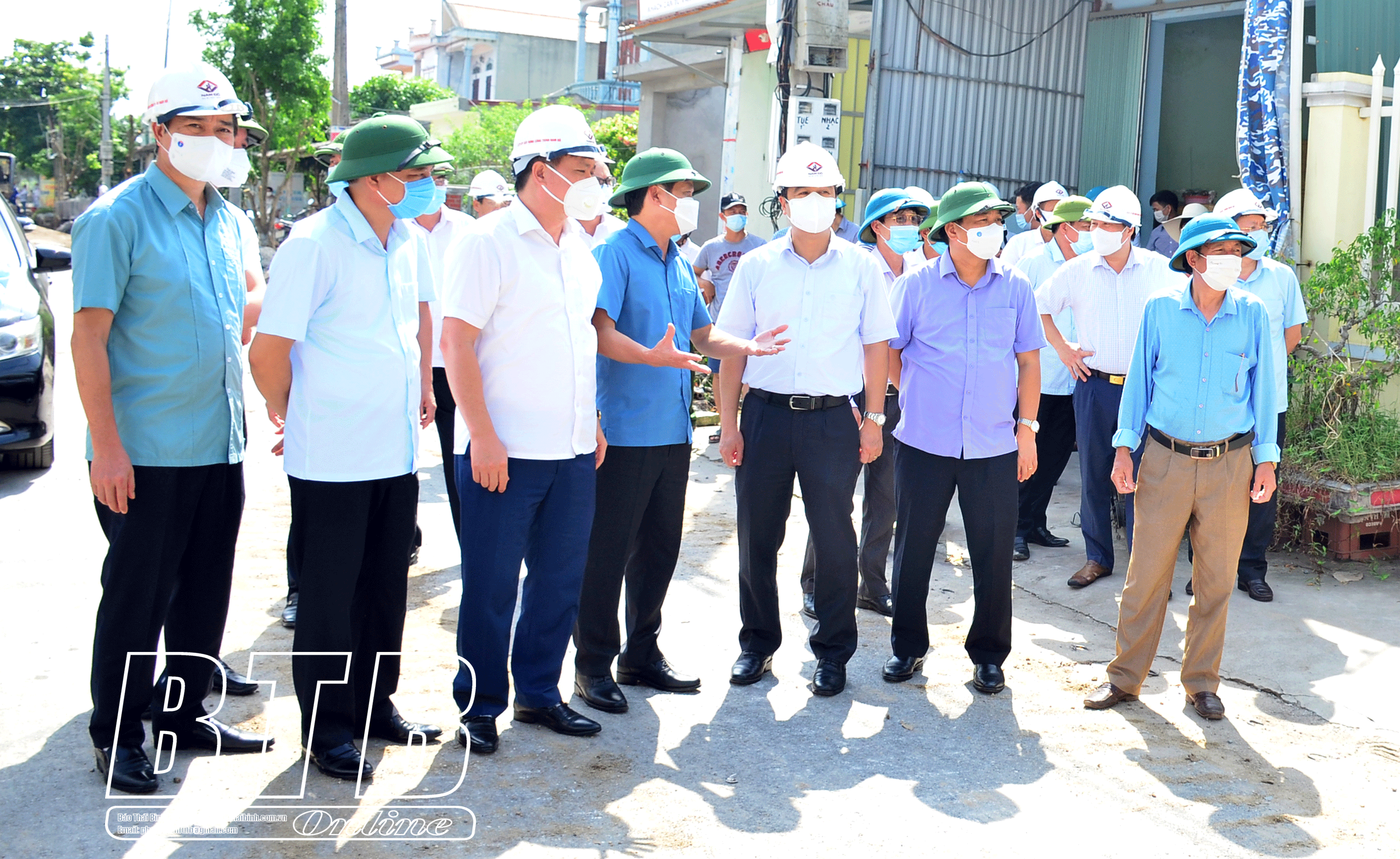 Các đồng chí: Ngô Đông Hải, Ủy viên Ban Chấp hành Trung ương Đảng, Bí thư Tỉnh ủy; Nguyễn Khắc Thận, Phó Bí thư Tỉnh ủy, Chủ tịch UBND tỉnh cùng các đồng chí lãnh đạo tỉnh kiểm tra, chỉ đạo công tác giải phóng mặt bằng tại xã An Thái.