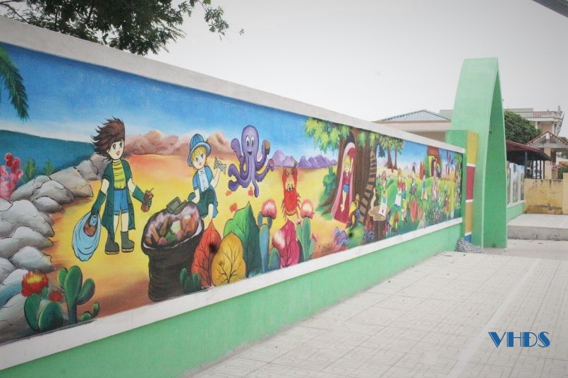 Dọc tuyến đường trung tâm xã Đông Văn là những tiểu cảnh, bức tường bích họa với nhiều gam mày rực rỡ