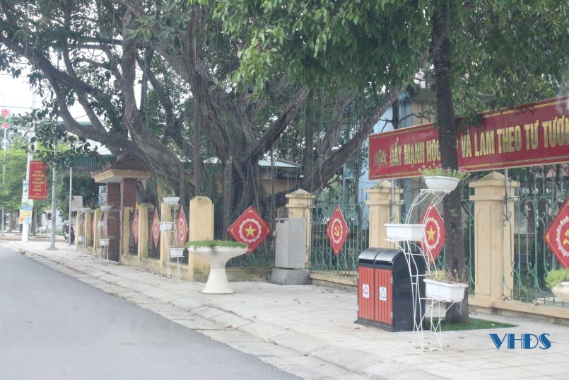 Thùng rác, chậu hoa được xếp đặt dọc 2 bên tuyến được trục chính dẫn về trung tâm xã.