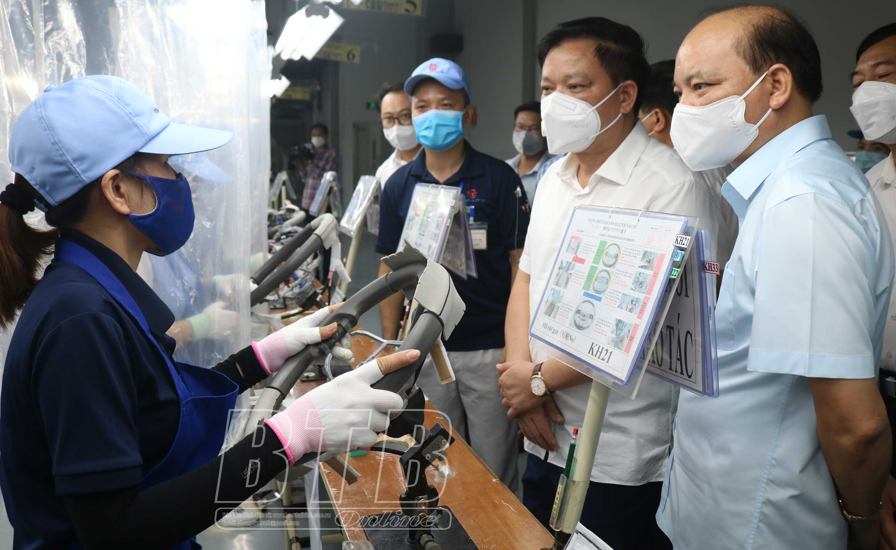 Đồng chí Nguyễn Khắc Thận, Phó Bí thư Tỉnh ủy, Chủ tịch UBND tỉnh, Trưởng ban Chỉ đạo phòng, chống dịch Covid-19 tỉnh thăm hỏi, động viên công nhân Công ty TNHH Toyoda Gosei Hải Phòng chi nhánh Thái Bình.