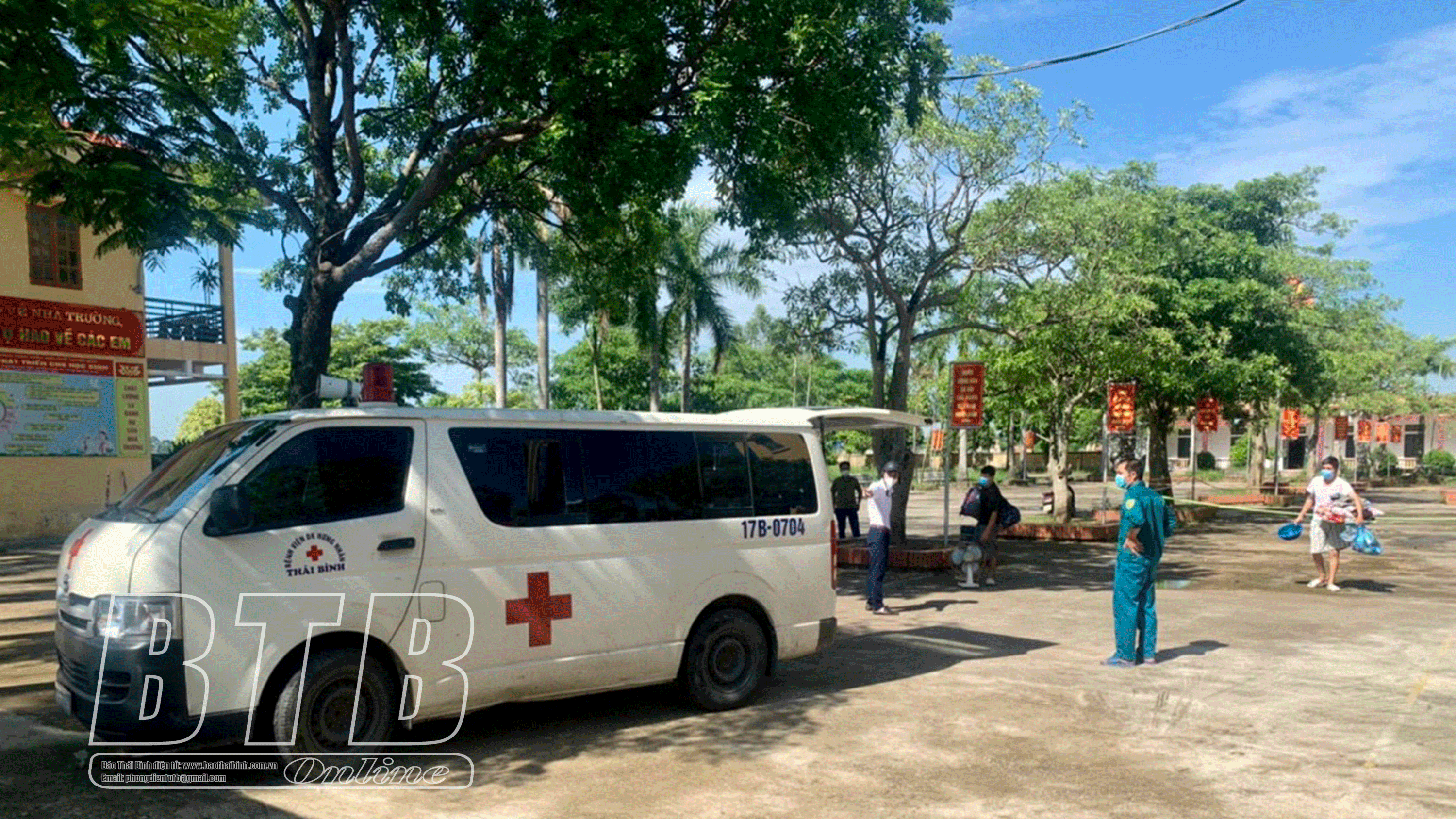 Trung tâm Y tế huyện Hưng Hà chuyển các công dân đang cách ly tập trung tại Trường THCS Phạm Đôn Lễ (Hưng Hà) về khu cách ly tập trung của huyện, bàn giao lại mặt bằng, cơ sở vật chất cho nhà trường.