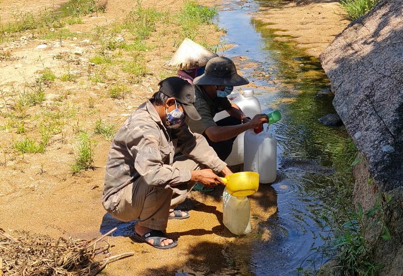“Nước không có, người dân phải đi 3 cây số ra suối múc nước đổ vào can chở về nhà. Tắm, giặt cũng phải ra suối. Giếng ở nhà khô cạn mà không thể đào sâu hơn vì đụng vào đá. Nước giếng chỉ phục vụ nấu uống còn những sinh hoạt khác đều phải ra suối mà suối cũng khô cạn không có nước”, ông Đinh Văn Út, ở làng Canh Lãnh, xã Canh Hòa cho biết.