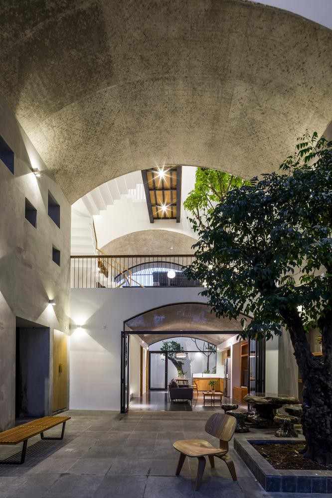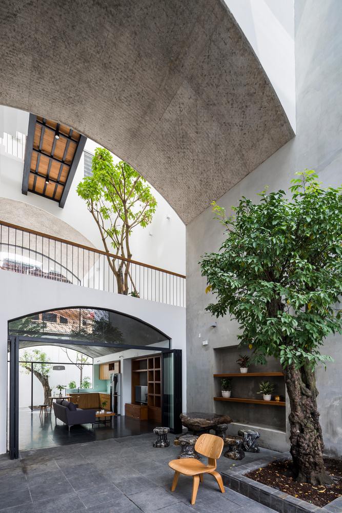 Đây là tổ ấm của một gia đình 3 người ở quận Bình Thạnh (TP. HCM) có diện tích 380m2 mang tên “Nhà Vòm”. Giống như các căn nhà phố điển hình của Việt Nam, vì nằm trong khu đất chật hẹp ở nơi có mật độ dân cư cao, nhà mọc san sát, đường trước nhà là ngõ hẹp nên ngôi nhà không thể có sân vườn. Tuy nhiên, gia chủ mong muốn ngôi nhà của mình có không gian mở để có ánh sáng và rộng rãi hơn.