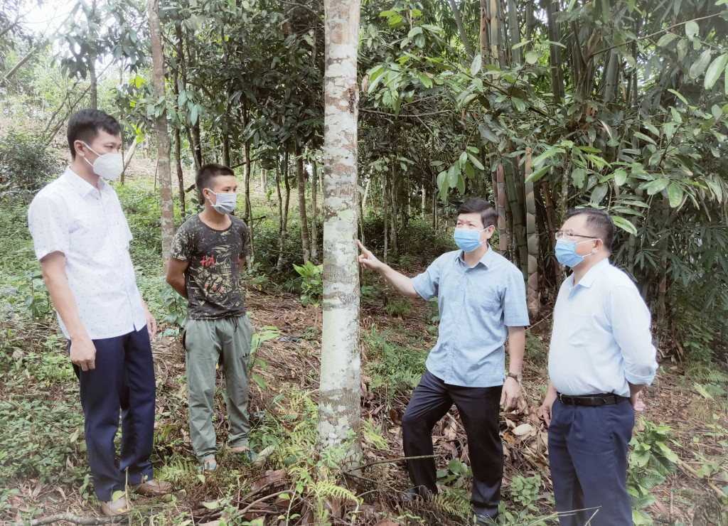 Lãnh đạo huyện Ba Chẽ thăm mô hình trồng cây gỗ lớn tại thôn Nam Hả Trong, xã Nam Sơn, tháng 8/2021. Ảnh: Bình Minh (CTV)