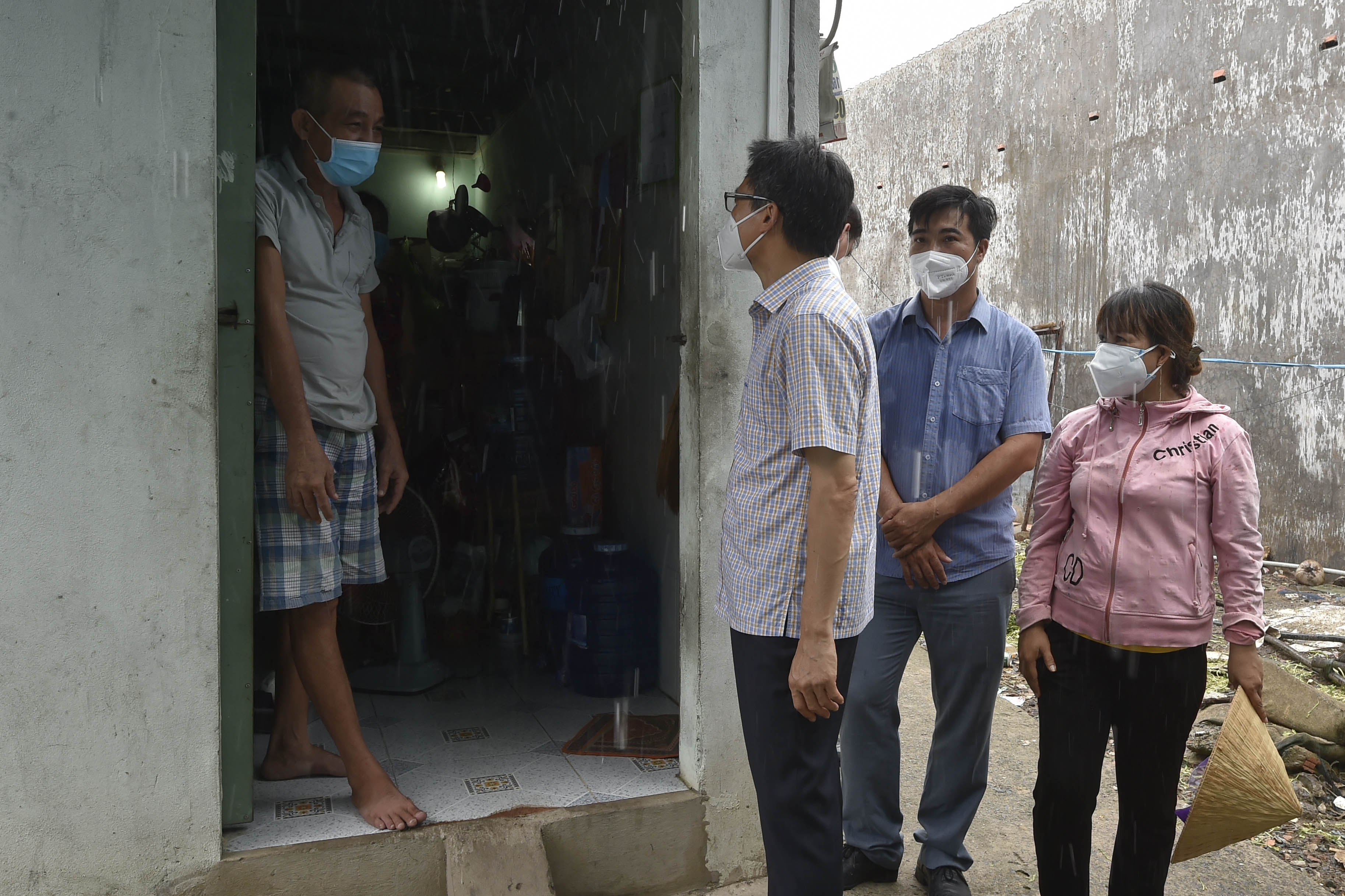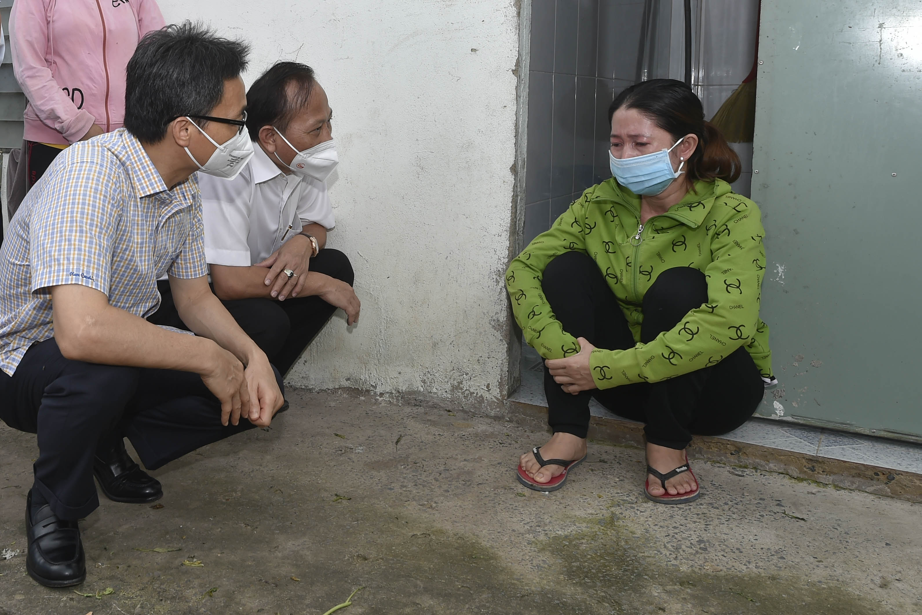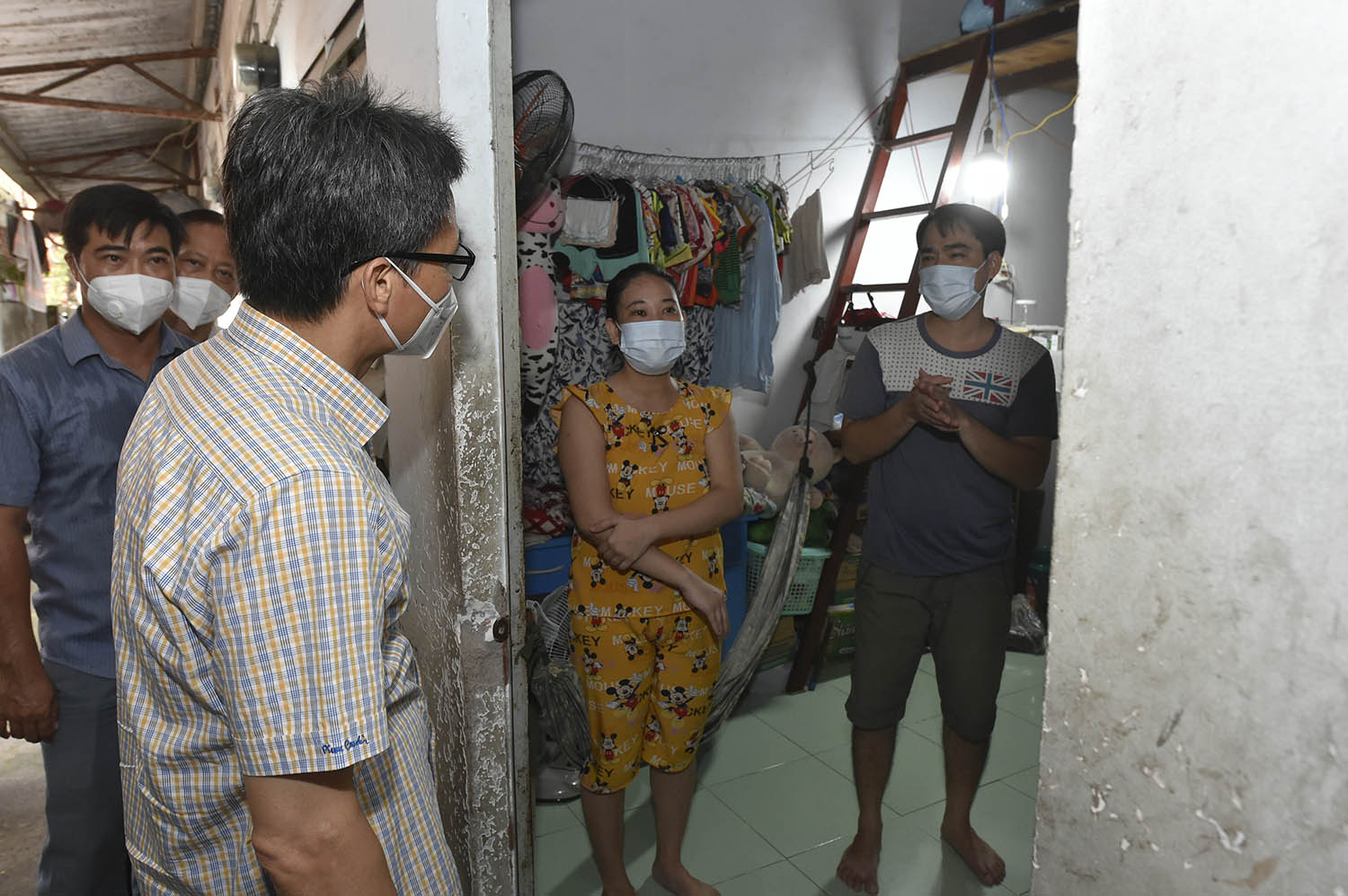 Tới thăm một số khu trọ tại xã Vĩnh Lộc B (huyện Bình Chánh), Phó Thủ tướng thăm hỏi, chia sẻ với những khó khăn, vất vả, thiếu thốn của nhiều hộ gia đình đã nghỉ việc, không nguồn thu nhập nhiều tháng qua.