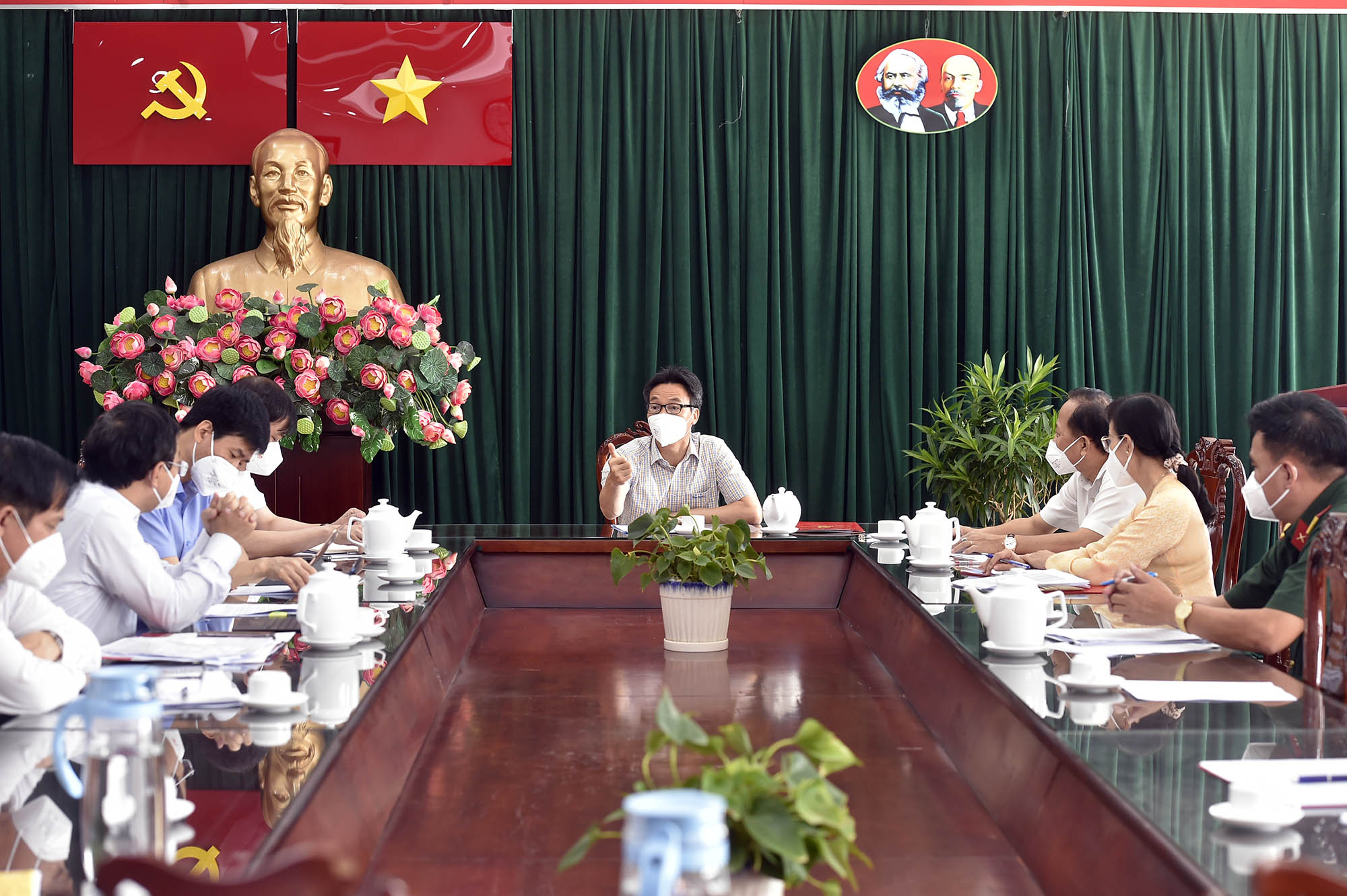 Phó Thủ tướng Vũ Đức Đam đề nghị huyện Bình Chánh cần tiếp tục bám sát thực tiễn, có những giải pháp chủ động, linh hoạt trong phòng, chống dịch - Ảnh: VGP/Đình Nam.