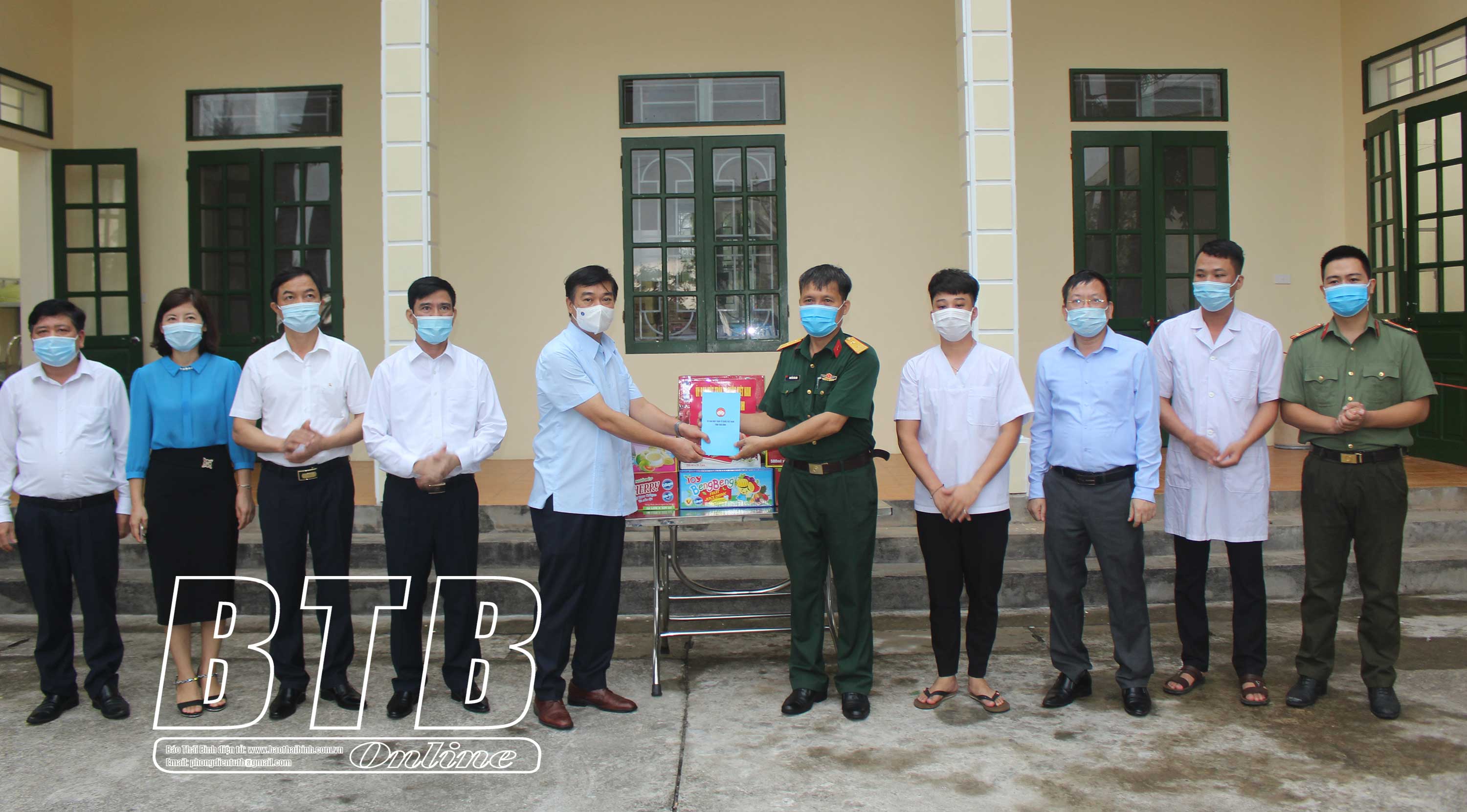Đồng chí Nguyễn Văn Giang, Ủy viên Ban Thường vụ, Trưởng ban Dân vận Tỉnh ủy, Chủ tịch Ủy ban MTTQ tỉnh đi thăm, động viên và tặng quà lực lượng làm nhiệm vụ ở khu cách ly tập trung của huyện Hưng Hà tại Trung tâm Chính trị huyện.