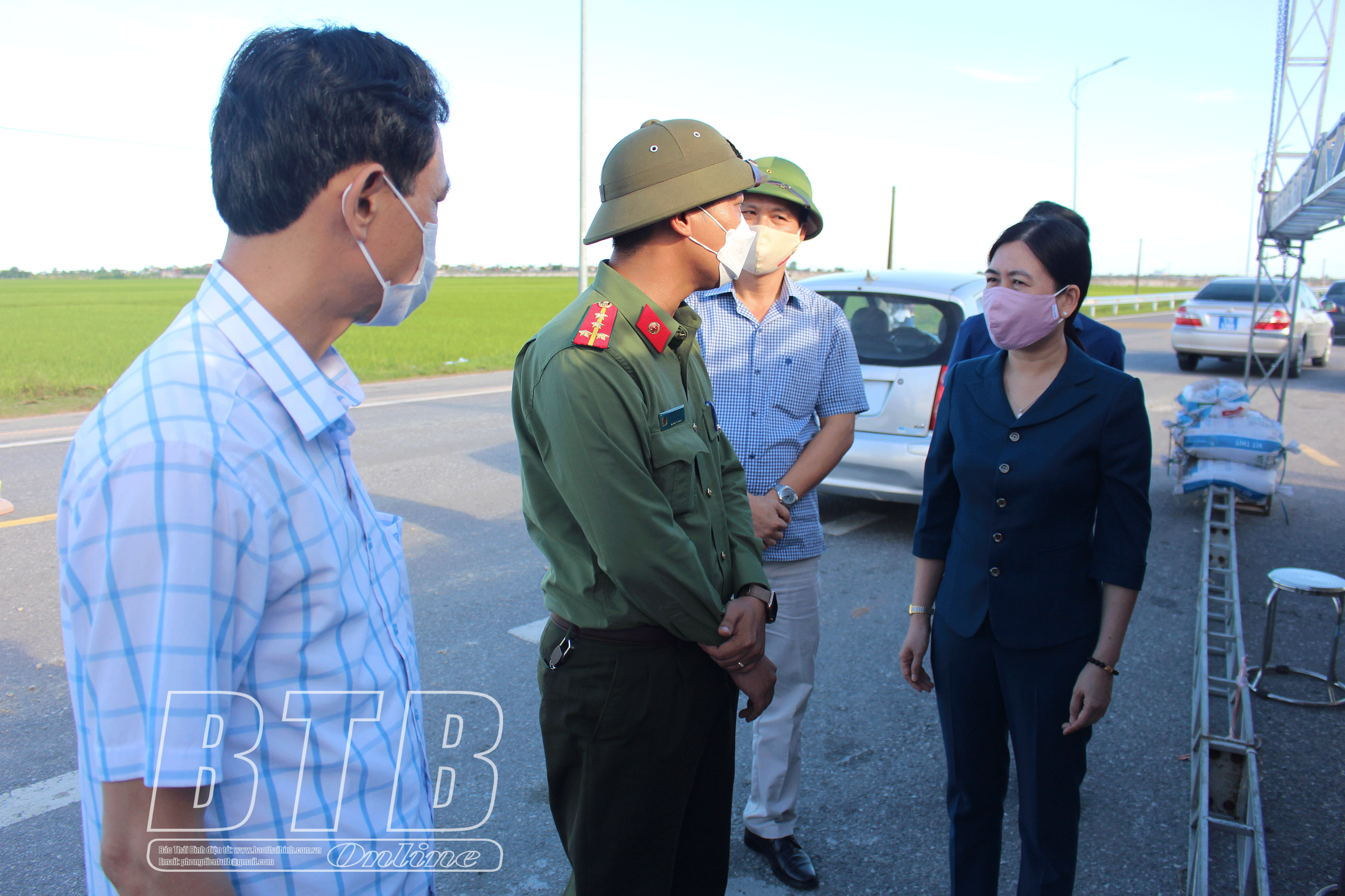 Đồng chí Trần Thị Bích Hằng, Tỉnh ủy viên, Phó Chủ tịch UBND tỉnh, Phó Trưởng ban thường trực Ban Chỉ đạo phòng, chống dịch Covid-19 tỉnh kiểm tra tại chốt chặn khu vực đang phong tỏa tại thị trấn Diêm Điền.