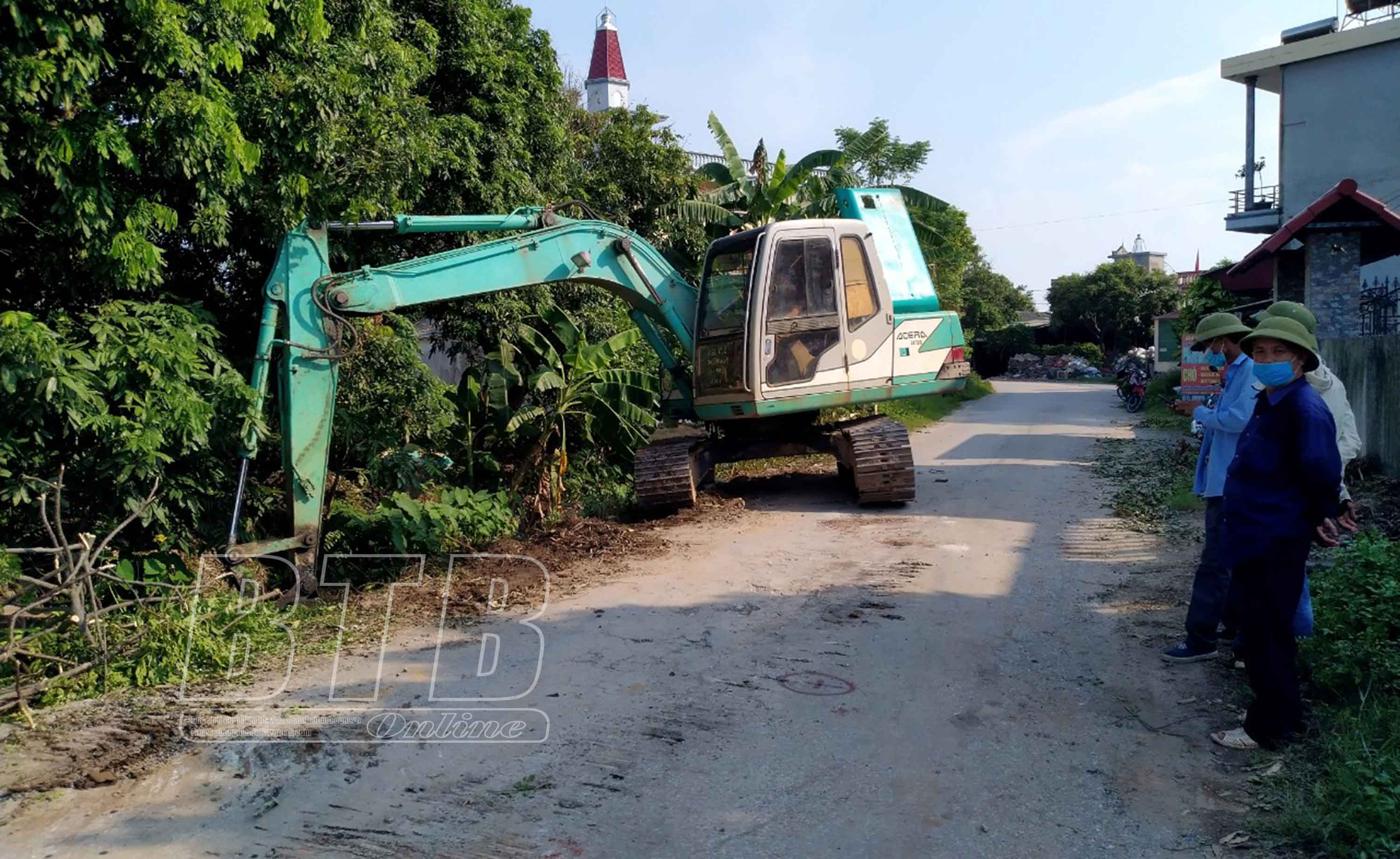 Người dân thôn Đông Châu, xã Quỳnh Ngọc (Quỳnh Phụ) tích cực hiến đất làm đường góp phần giảm gánh nặng cho ngân sách nhà nước.