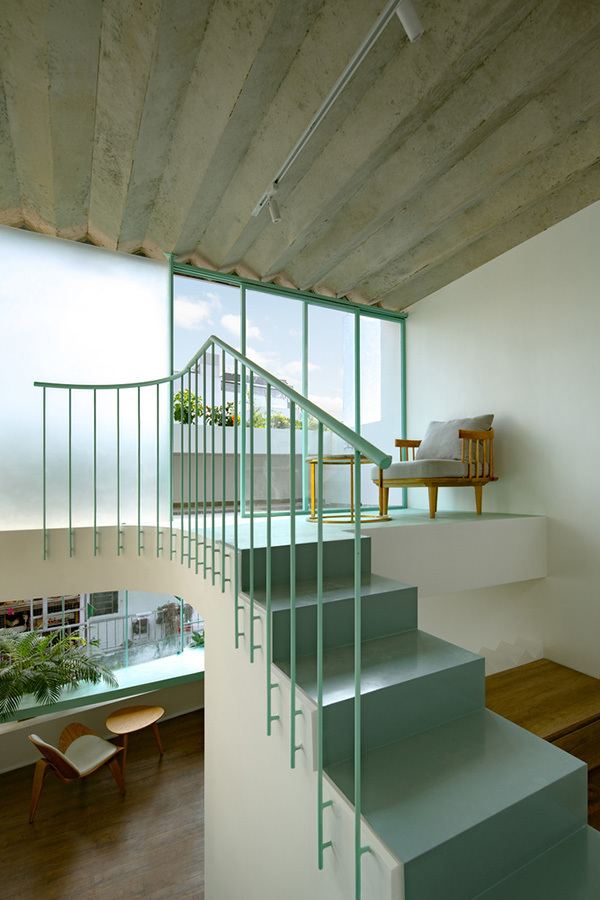 Giếng trời mang ánh sáng cho khu vực cầu thang trong nhà.