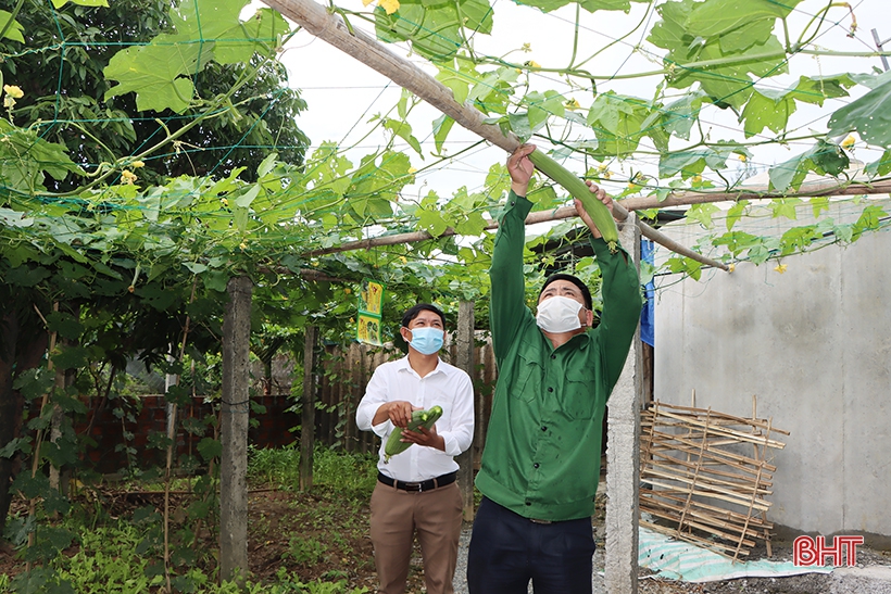 Ngày mới của chị Nguyễn Thị Hiền (thôn Tân An, xã Cẩm Bình, Cẩm Xuyên) bắt đầu bằng việc thu hoạch rau quả trong vườn để thương lái đến thu mua. Hơn 5 năm nay, đều đặn mỗi ngày, gia đình chị Hiền thu nhập từ 200.000 – 300.000 đồng nhờ vườn mẫu rộng 2.200 m2.