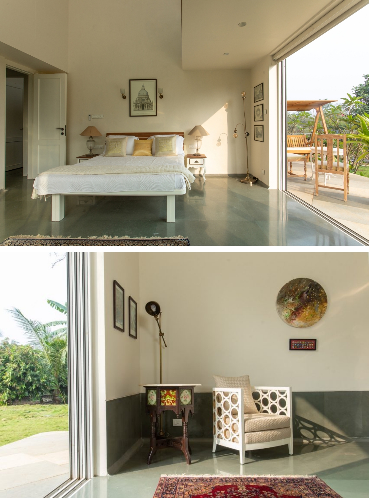 Căn nhà rộng hơn 300 m2 ở ngoại ô TP Mumbai là món quà bất ngờ một người vợ dành tặng chồng nhân dịp sinh nhật. Nữ chủ nhân cũng muốn nơi đây trở thành chỗ thư giãn và thiền định của gia đình.