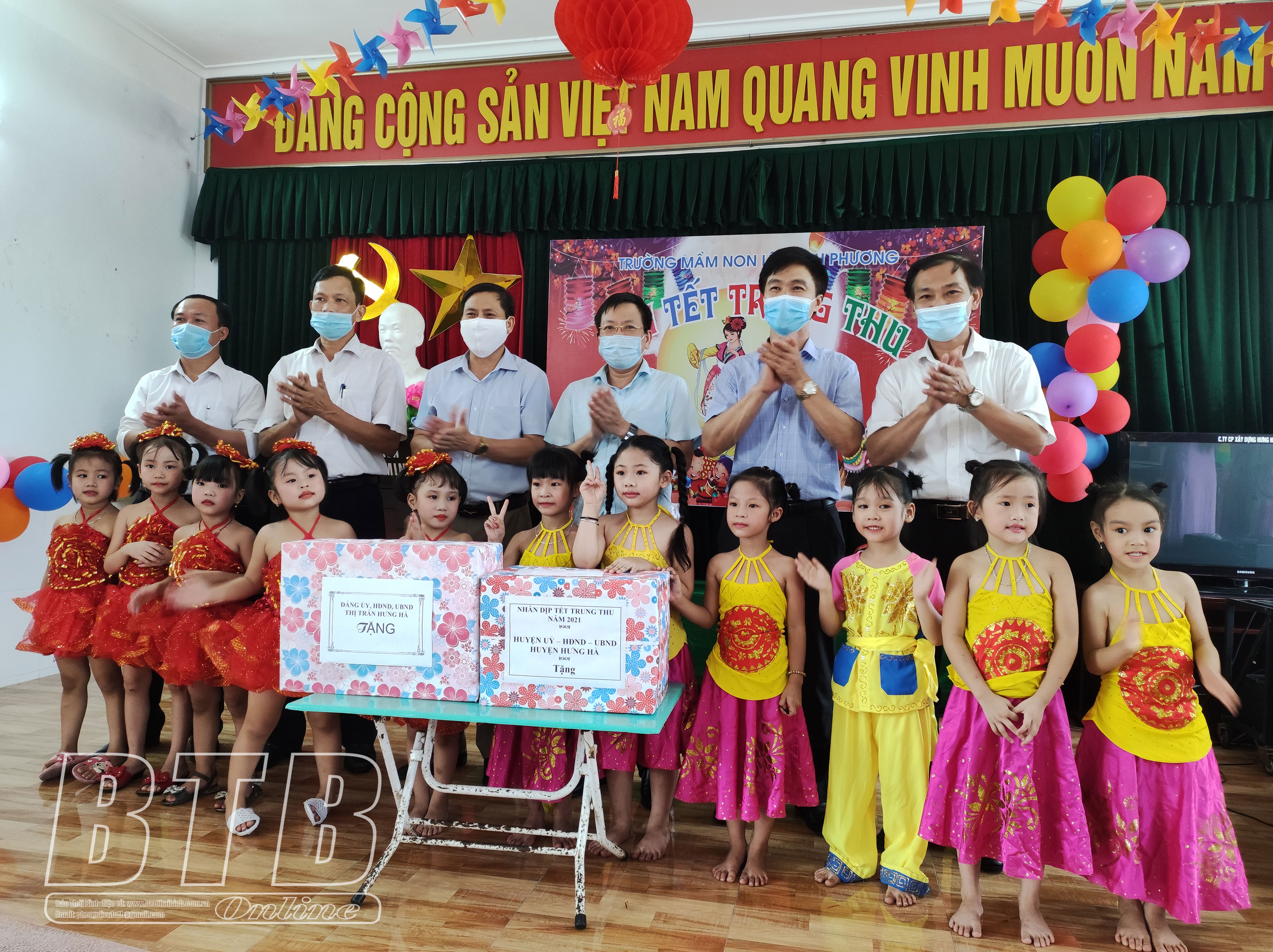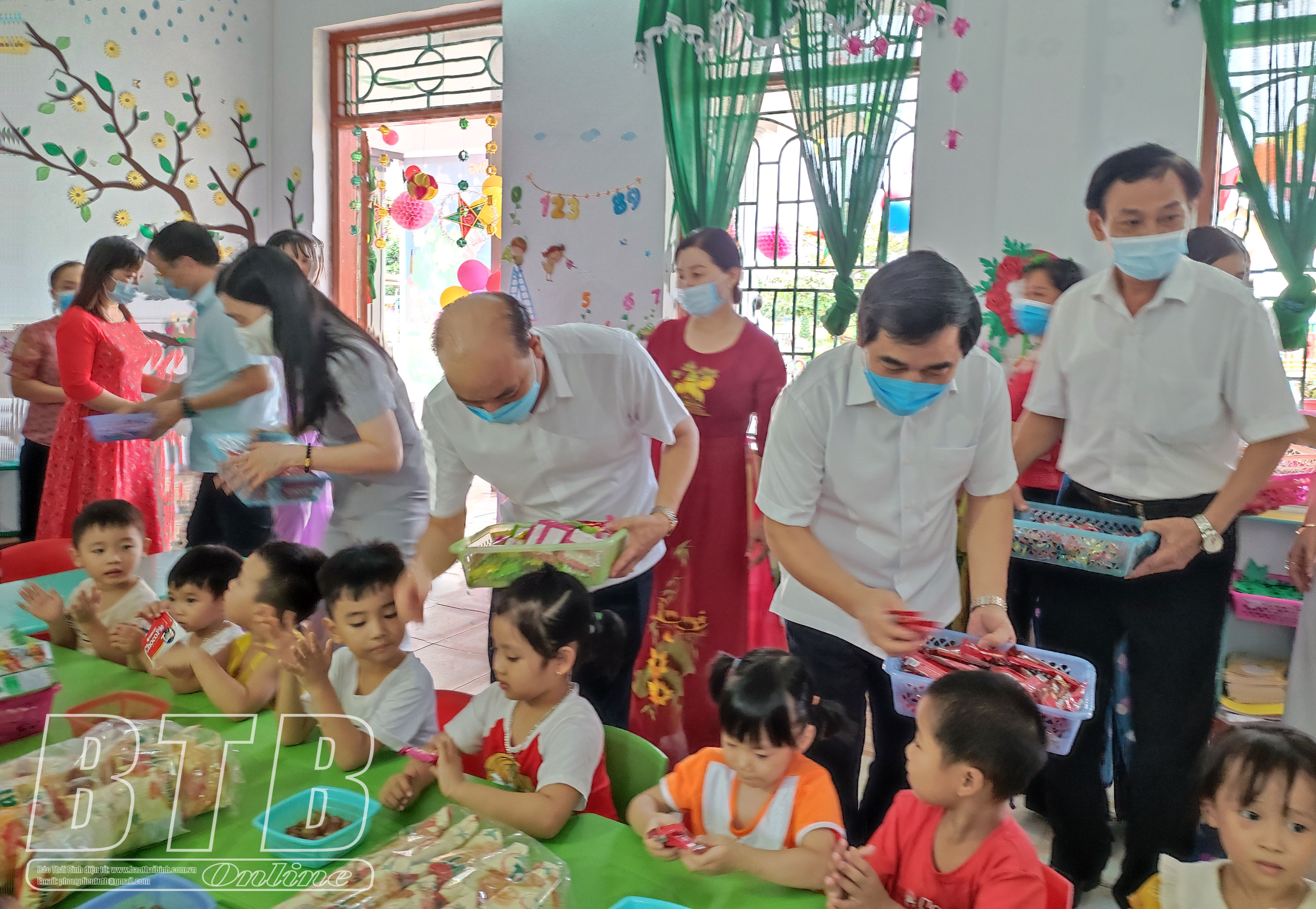Tại các điểm đến: Trường Mầm non Lê Danh Phương, thị trấn Hưng Hà; Trường Mầm non Thống Nhất, xã Thống Nhất và Trường Mầm non Lý Nam Đế, xã Hồng Minh (Hưng Hà), đồng chí Phó Bí thư thường trực Tỉnh ủy, Chủ tịch HĐND tỉnh cùng các đồng chí trong đoàn đã tặng quà tết Trung thu cho các cháu mầm non, chúc các cháu có một mùa Trung thu đầm ấm, vui vẻ.