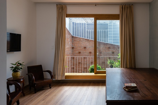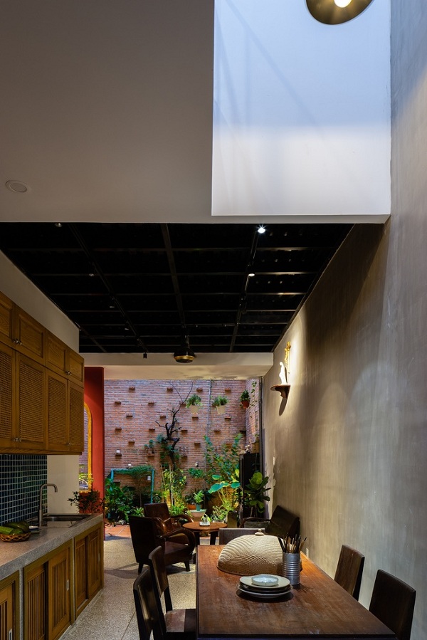 Khu vực giếng trời giúp đón nắng, gió trong nhà.
