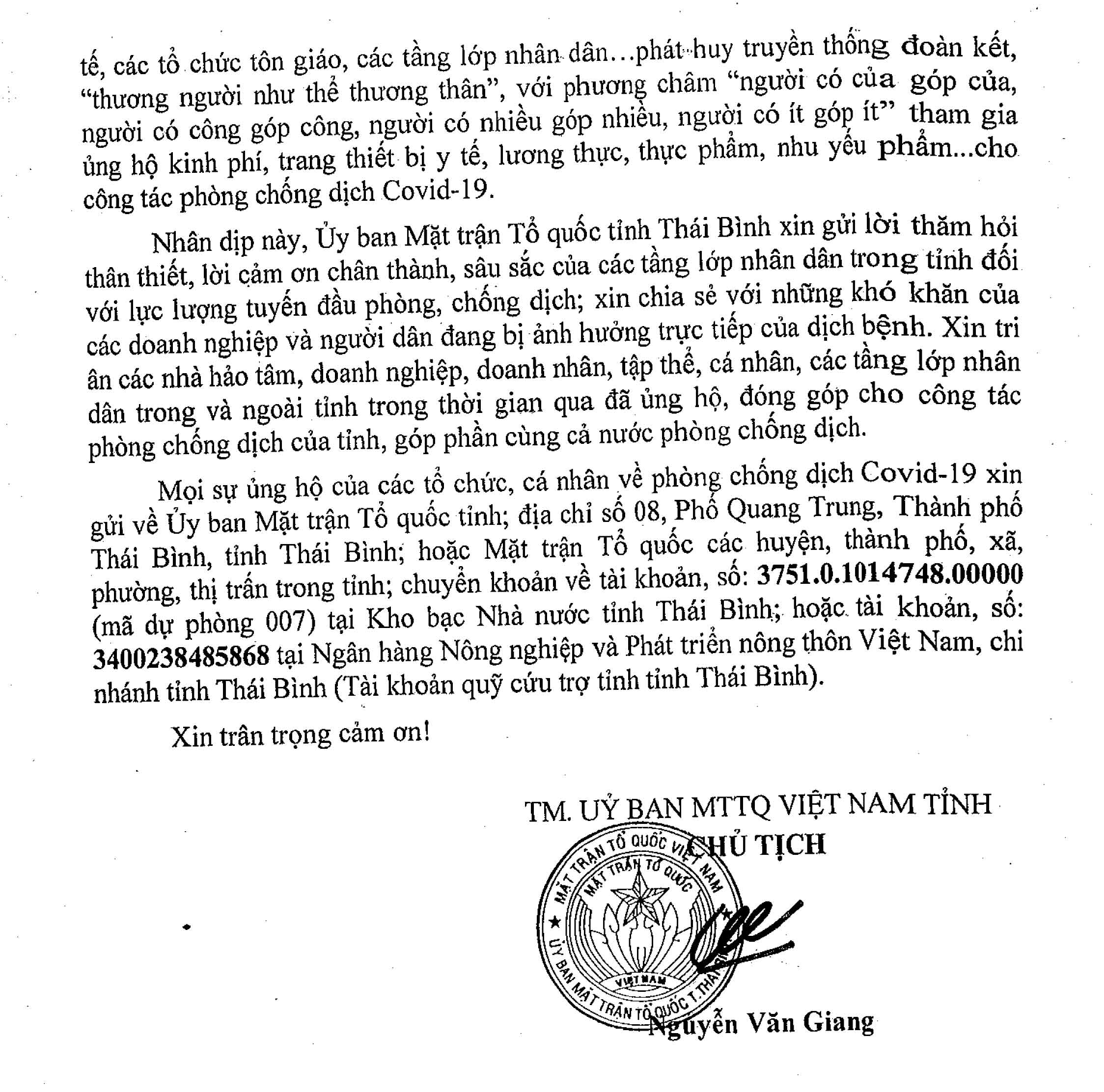 Lời kêu gọi vận động, ủng hộ công tác phòng, chống dịch Covid-19