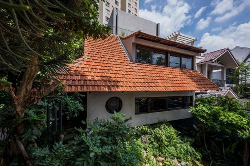 Từ kiến trúc đến tên của dự án "Quê"- công trình này của 23o5Studio gợi nhớ sự trở về của những người xa quê hương. Dự án nằm trong khu dân cư đông đúc ở TP.HCM.