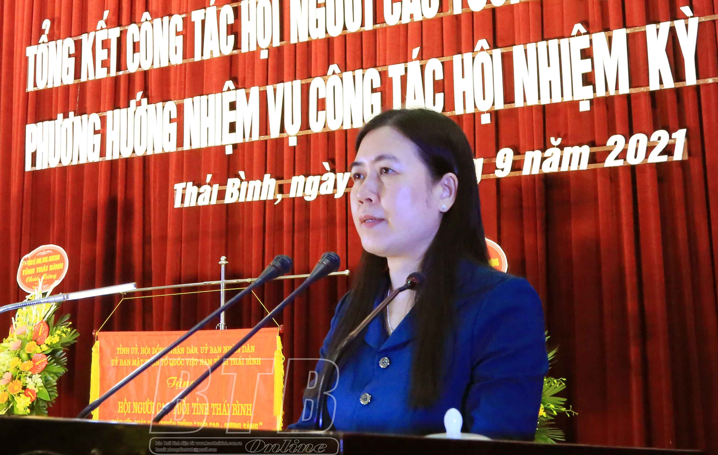 Phát biểu tại hội nghị, đồng chí Trần Thị Bích Hằng, Tỉnh ủy viên, Phó Chủ tịch UBND tỉnh ghi nhận, đánh giá cao nỗ lực, cố gắng và những đóng góp to lớn của NCT đối với mọi hoạt động của tỉnh. Hội NCT các cấp trong tỉnh đã kế thừa và phát huy truyền thống vẻ vang của Hội Phụ lão cứu quốc do Chủ tịch Hồ Chí Minh sáng lập; thực hiện tốt chức năng, nhiệm vụ theo quy định của Luật Người cao tuổi và Điều lệ Hội NCT Việt Nam, thật sự là tổ chức gắn kết hoạt động của NCT trong tỉnh. Đồng chí đề nghị thời gian tới, Ban đại diện Hội NCT tỉnh tiếp tục quán triệt, tuyên truyền sâu rộng hơn nữa các chủ trương, đường lối của Đảng, chính sách, pháp luật của Nhà nước, Nghị quyết Đại hội đại biểu Đảng bộ tỉnh lần thứ XX tới cán bộ, hội viên và các tầng lớp nhân dân; phát huy truyền thống, uy tín và kinh nghiệm của NCT trong sự nghiệp xây dựng và bảo vệ Tổ quốc. Hội NCT các cấp cần chủ động tham mưu, đề xuất cấp ủy, chính quyền các cấp giải pháp, chính sách đối với công tác NCT, vấn đề già hóa dân số ở địa phương; quan tâm hơn nữa đến nhu cầu cơ bản của NCT, nhất là NCT thuộc hộ nghèo, cô đơn, khuyết tật, có hoàn cảnh khó khăn. Ban đại diện Hội NCT tỉnh không ngừng đổi mới nội dung, phương thức hoạt động, tăng cường tập hợp, thu hút hội viên, xây dựng tổ chức hội vững mạnh; quan tâm hơn công tác tập huấn, bồi dưỡng cán bộ, tăng cường kiểm tra, giám sát, bảo vệ quyền và lợi ích cho hội viên. Cấp ủy đảng, chính quyền, MTTQ, các đoàn thể chính trị - xã hội, cơ quan, đơn vị, cộng đồng doanh nhân trong tỉnh tiếp tục quan tâm, hỗ trợ và tạo mọi điều kiện thuận lợi giúp NCT làm tốt hơn nữa nhiệm vụ xây dựng tổ chức hội và chăm sóc, nâng cao đời sống hội viên.