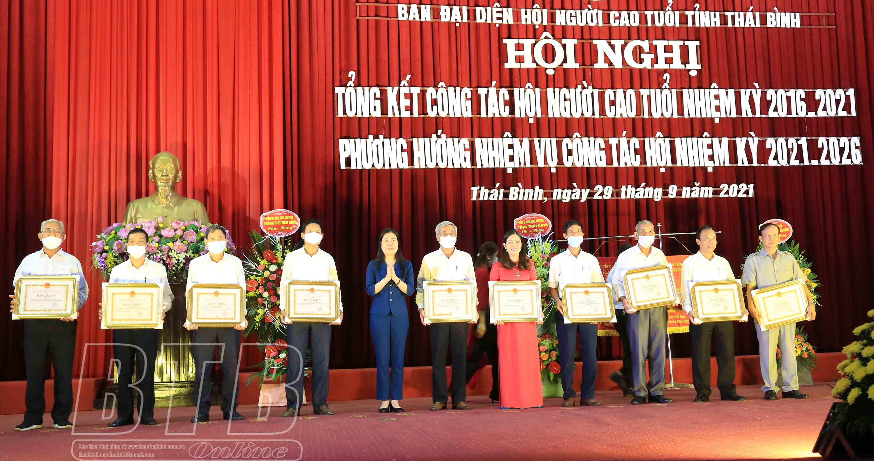 Cũng tại hội nghị, các đồng chí lãnh đạo tỉnh đã trao kỷ niệm chương, bức trướng và bằng khen của Trung ương Hội NCT Việt Nam, UBND tỉnh, Ban đại diện Hội NCT tỉnh cho các tập thể, cá nhân có thành tích xuất sắc trong công tác hội nhiệm kỳ 2016 - 2021.