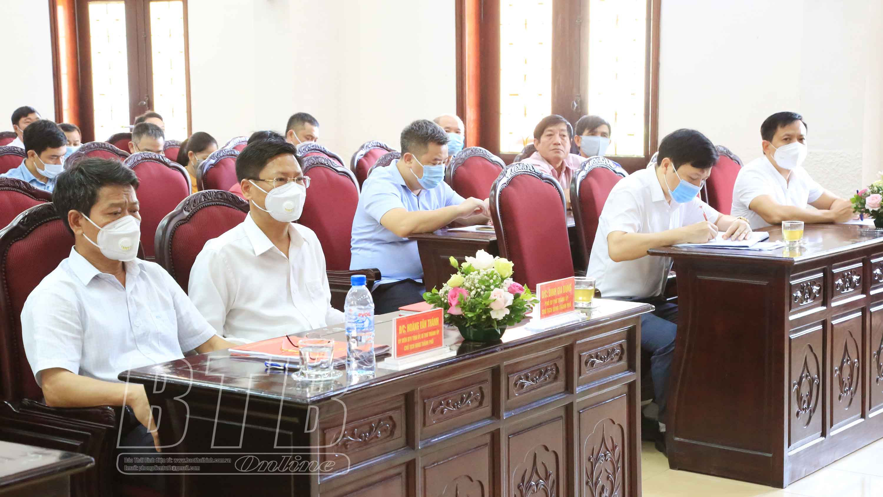 Cùng dự có đồng chí Hoàng Văn Thành, Ủy viên Ban Thường vụ Tỉnh ủy, Bí thư Thành ủy, Chủ tịch HĐND thành phố Thái Bình; đại diện lãnh đạo Ủy ban MTTQ tỉnh và lãnh đạo UBND thành phố Thái Bình. Các đại biểu tham dự hội nghị tuân thủ nghiêm quy định về phòng, chống dịch Covid-19.