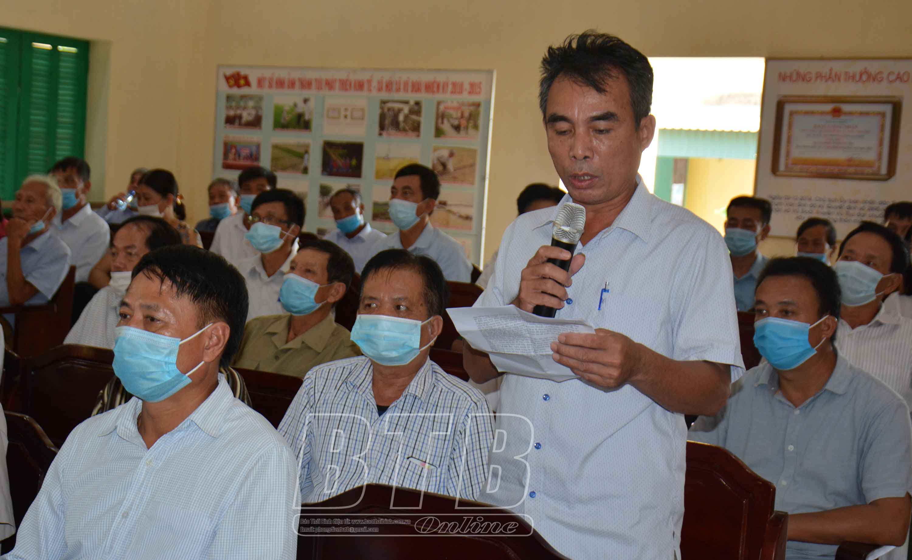 Cử tri xã Song An (Vũ Thư) phát biểu tại hội nghị.Cử tri 15 xã phía Nam huyện Vũ Thư dự hội nghị.