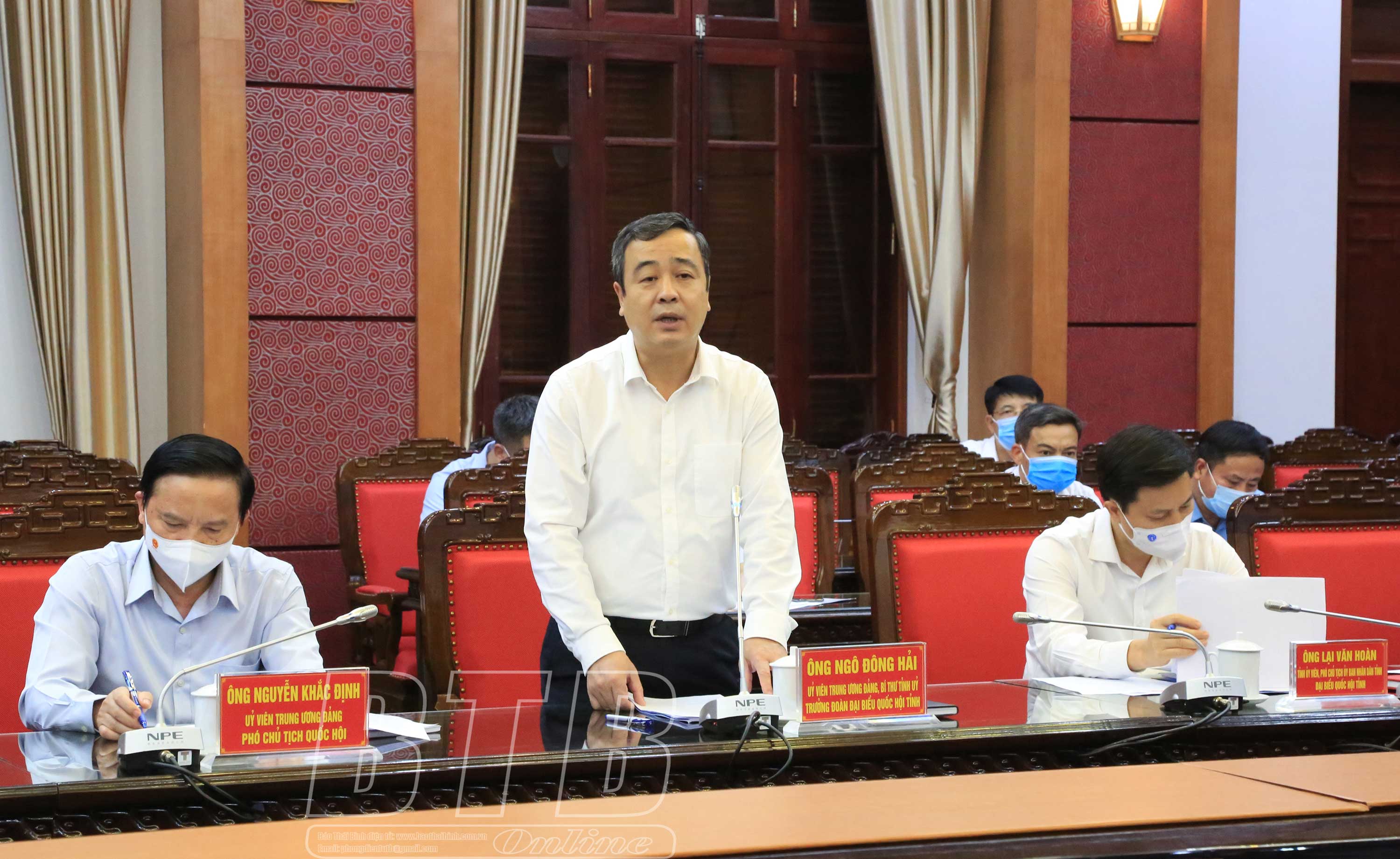Đồng chí Ngô Đông Hải, Ủy viên Ban Chấp hành Trung ương Đảng, Bí thư Tỉnh ủy, Trưởng đoàn đại biểu Quốc hội tỉnh khẳng định: Những kết quả tỉnh đạt được trong thực hiện nhiệm vụ kép vừa phát triển kinh tế - xã hội vừa phòng, chống dịch Covid-19 thời gian qua là sự nỗ lực, vào cuộc quyết liệt của cả hệ thống chính trị, của các tầng lớp nhân dân trong tỉnh. Đồng chí mong Quốc hội, các đại biểu Quốc hội tiếp tục quan tâm, tạo điều kiện để Thái Bình phát huy thế mạnh, huy động các nguồn lực tập trung cao nhất cho công tác phòng, chống dịch Covid-19, đẩy mạnh phát triển kinh tế - xã hội, đặc biệt là trong thu hút đầu tư, phát triển Khu kinh tế Thái Bình và hạ tầng giao thông kết nối.