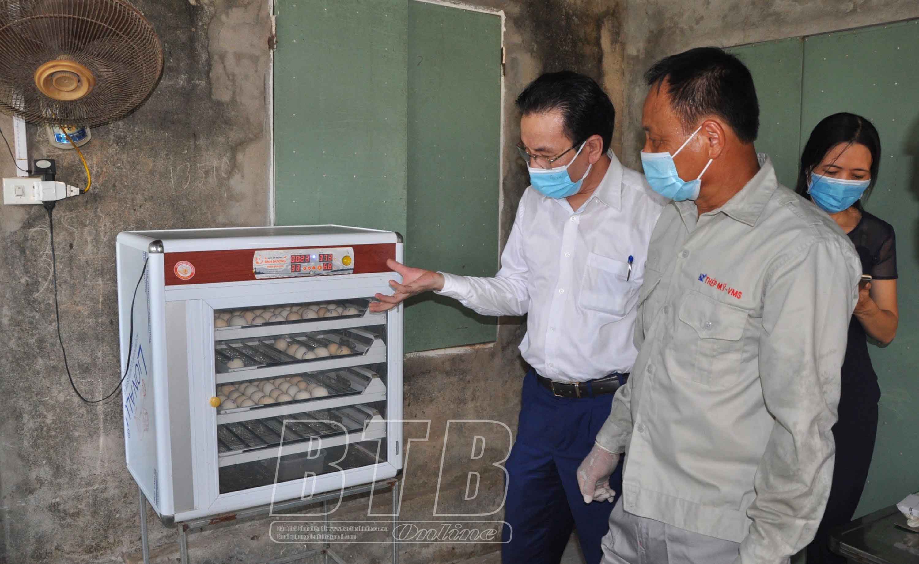 Sở Khoa học và Công nghệ kiểm tra thực tế mô hình nuôi gà Tò tại gia đình ông Trần Văn Hoàn, thôn Tô Hải, xã An Mỹ (Quỳnh Phụ).