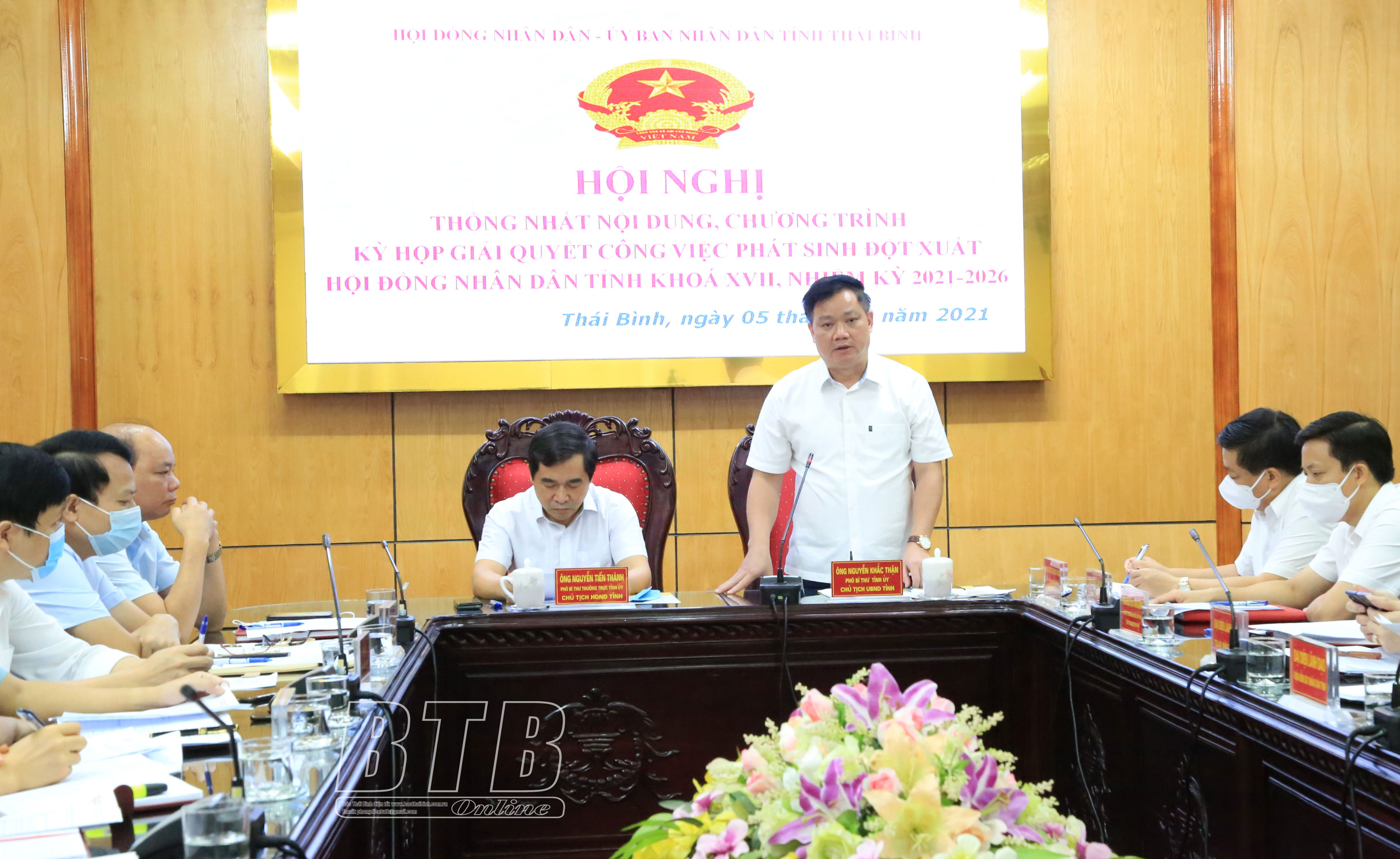 Phát biểu tại hội nghị, đồng chí Nguyễn Khắc Thận, Phó Bí thư Tỉnh ủy, Chủ tịch UBND tỉnh giải trình, làm rõ thêm một số nội dung liên quan đến các tờ trình trình kỳ họp; đồng thời bổ sung một số nội dung dự kiến sẽ trình kỳ họp liên quan đến công tác phòng, chống dịch Covid-19 trên địa bàn tỉnh, các giải pháp được triển khai để thích ứng trong tình hình mới; liên quan đến phát triển kinh tế, an sinh xã hội và một số nội dung khác.