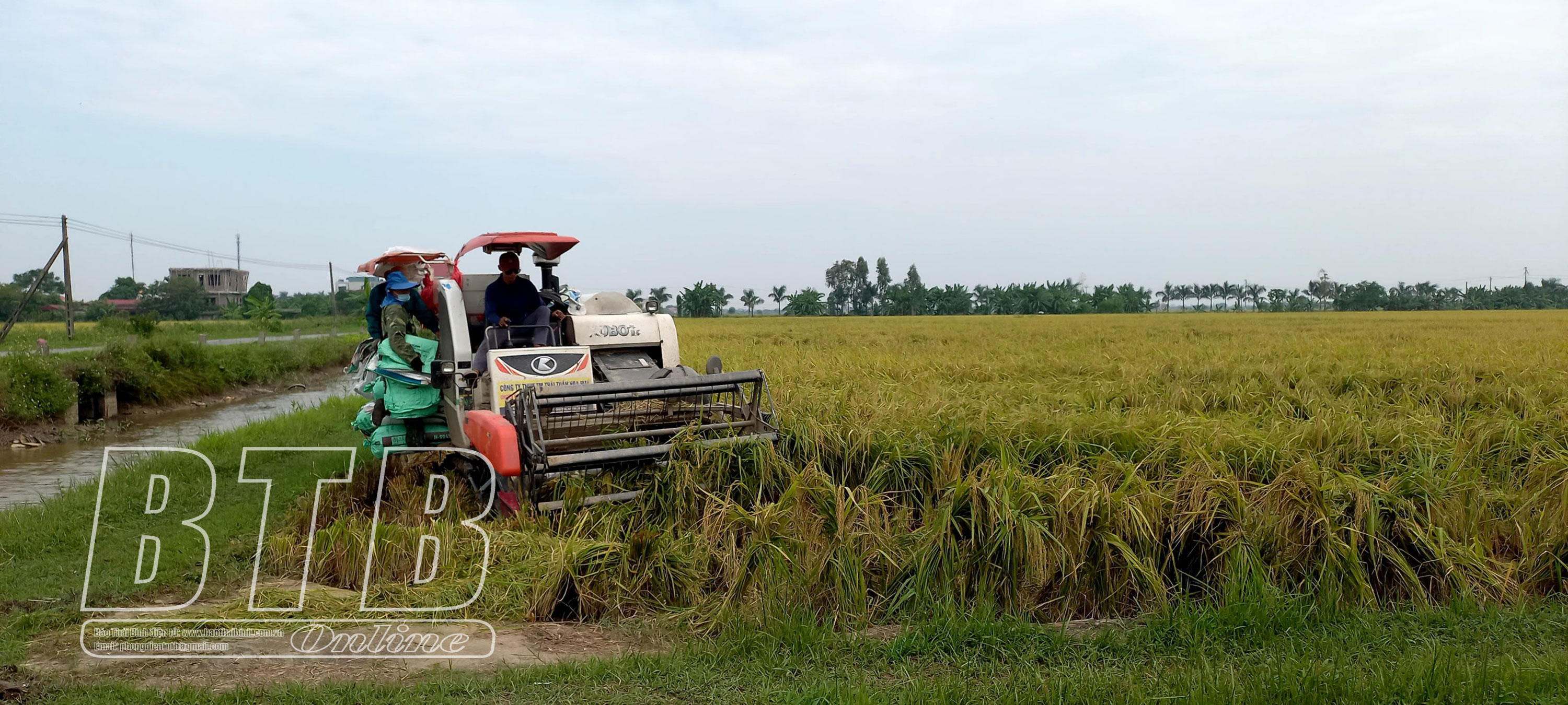 Nông dân huyện Thái Thụy thu hoạch lúa mùa.
