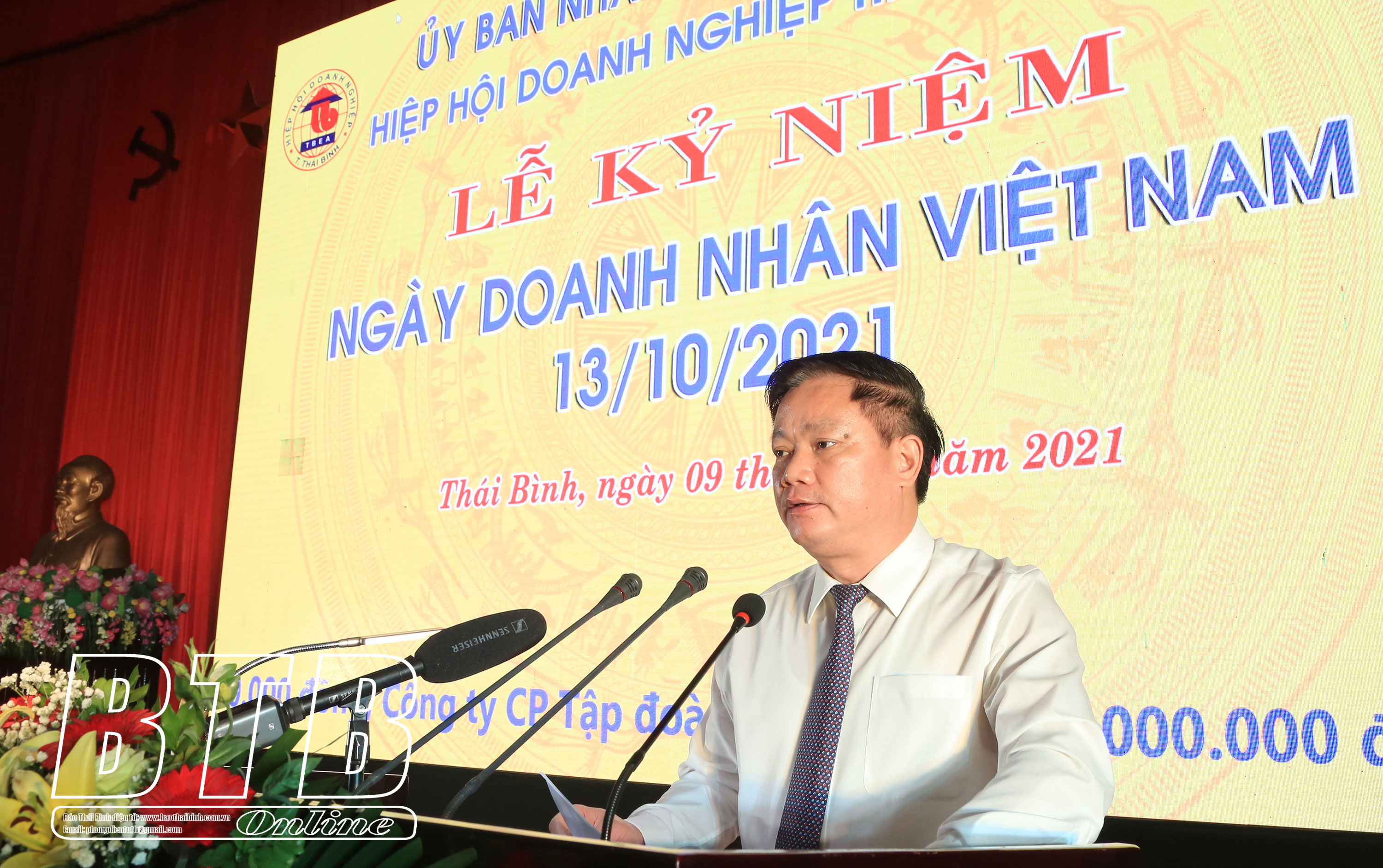 Tại buổi lễ, các đại biểu đã cùng nhau ôn lại truyền thống vẻ vang, tự hào của giới công thương từ những ngày đầu đất nước giành độc lập đến sự lớn mạnh của giới doanh nhân trong thời kỳ đổi mới. Những mốc son đáng nhớ trên chặng đường phát triển của cộng đồng doanh nghiệp, doanh nhân tỉnh Thái Bình và sự lớn mạnh của Hiệp hội Doanh nghiệp tỉnh. Trong bối cảnh gặp không ít khó khăn do ảnh hưởng của dịch Covid-19, song 7.733 doanh nghiệp, 921 chi nhánh và văn phòng đại diện trên địa bàn tỉnh vẫn năng động, sáng tạo, vươn lên duy trì hoạt động sản xuất, kinh doanh hiệu quả, bảo đảm việc làm, thu nhập ổn định cuộc sống cho hơn 280.000 lao động, đóng góp ngân sách nhà nước trên 5.100 tỷ đồng. Các doanh nghiệp, doanh nhân trong tỉnh đã tích cực thực hiện các chính sách an sinh xã hội, nhân đạo từ thiện; ủng hộ, trao tặng 33.500 suất quà tết với tổng trị giá 13,4 tỷ đồng cho hộ nghèo, gia đình chính sách có hoàn cảnh khó khăn. Gần 100 doanh nghiệp ủng hộ 6 tỷ đồng để Hiệp hội Doanh nghiệp tỉnh mua tặng vật tư sinh phẩm phục vụ công tác xét nghiệm sàng lọc SARS-CoV-2, xe vận chuyển bệnh nhân, xây dựng kho lạnh bảo quản vắc-xin, thiết bị y tế cho lực lượng tuyến đầu chống dịch Covid-19...
