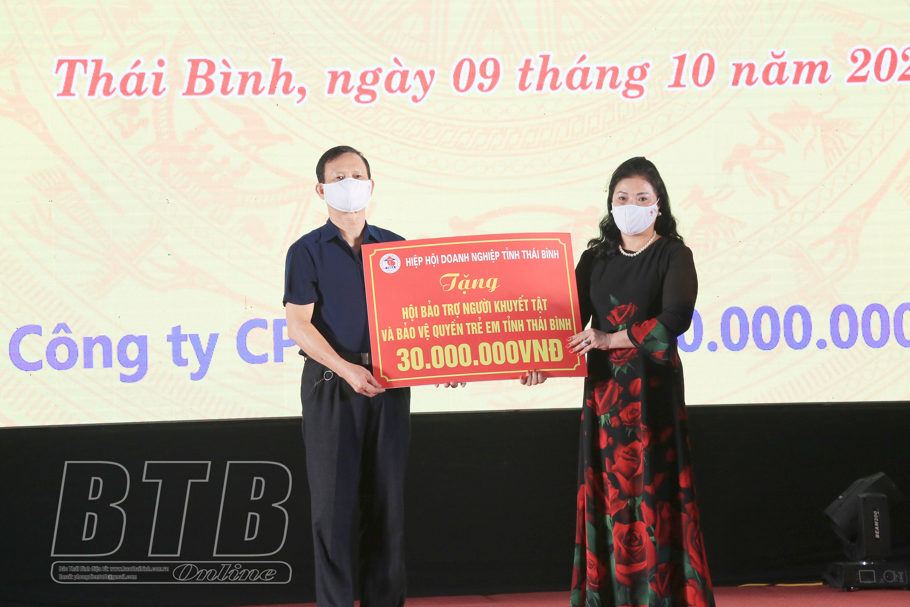 Hiệp hội Doanh nghiệp tỉnh trao tiền ủng hộ cho Hội Bảo trợ người khuyết tật và Bảo vệ quyền trẻ em tỉnh.