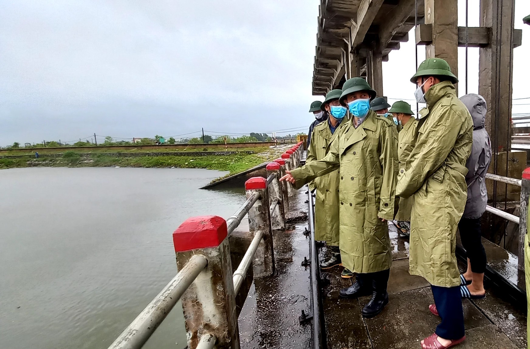 Đồng chí Lại Văn Hoàn, Tỉnh ủy viên, Phó Chủ tịch UBND tỉnh, Phó Trưởng ban thường trực Ban Chỉ huy PCTT - TKCN tỉnh kiểm tra công tác tiêu nước tại cống Lân (Tiền Hải).