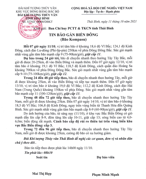 - Công điện khẩn số 11/CĐ-PCTT ngày 5/9/2024 của Ban Chỉ huy PCTT và TKCN tỉnh Thái Bình điện Ban Chỉ huy PCTT và TKCN các cấp, các ngành 05.09.2024 | 19:05 PM