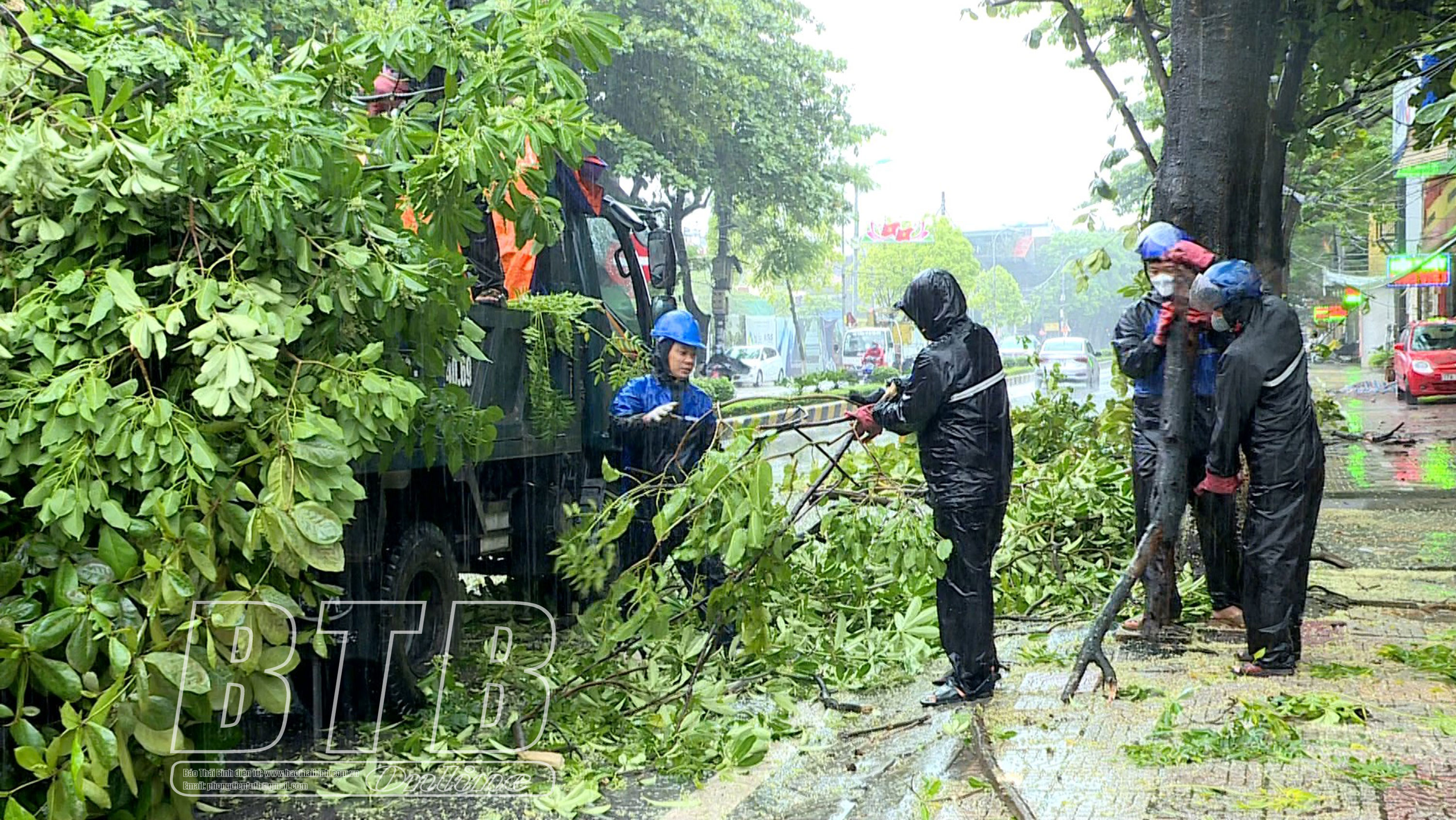 Mặc dù trời mưa to nhưng lực lượng công nhân viên của Công ty Cổ phần Môi trường và Công trình đô thị Thái Bình vẫn ra quân la tỉa các cành cây to có nguy cơ đổ gẫy và khơi thông cống rãnh tại một số tuyến đường hay ngập úng cục bộ trên địa bàn thành phố. Đồng thời, Công ty huy động công nhân, phương tiện xe cơ giới như máy xúc, xe vận chuyển thu gom để đẩy nhanh việc trục vớt bèo bồng trên sông 3/2 đoạn chảy qua khu vực tái định cư đường Đồng Lôi, phường Trần Lãm với tổng chiều dài hơn 2km, đây là tuyến sông đầu nguồn của thành phố dẫn nước vào ra trực tiếp sông Trà Lý. Ước tính có hàng chục nghìn mét khối bèo trên sông được trục vớt, trả lại sự thông thoáng cho dòng sông.