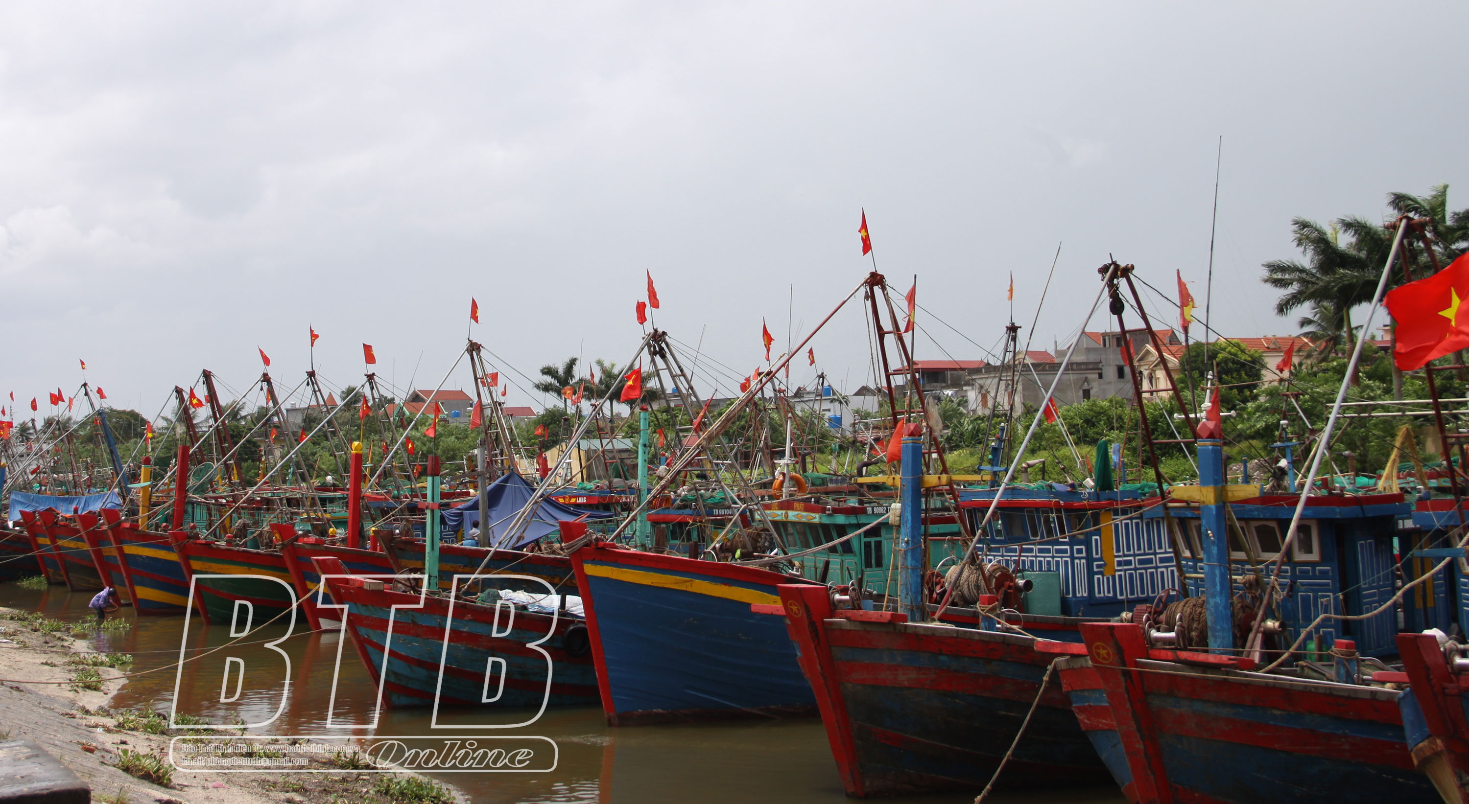 Tàu, thuyền của ngư dân Thái Thụy neo đậu vào nơi an toàn. Ảnh: Trần Tuấn