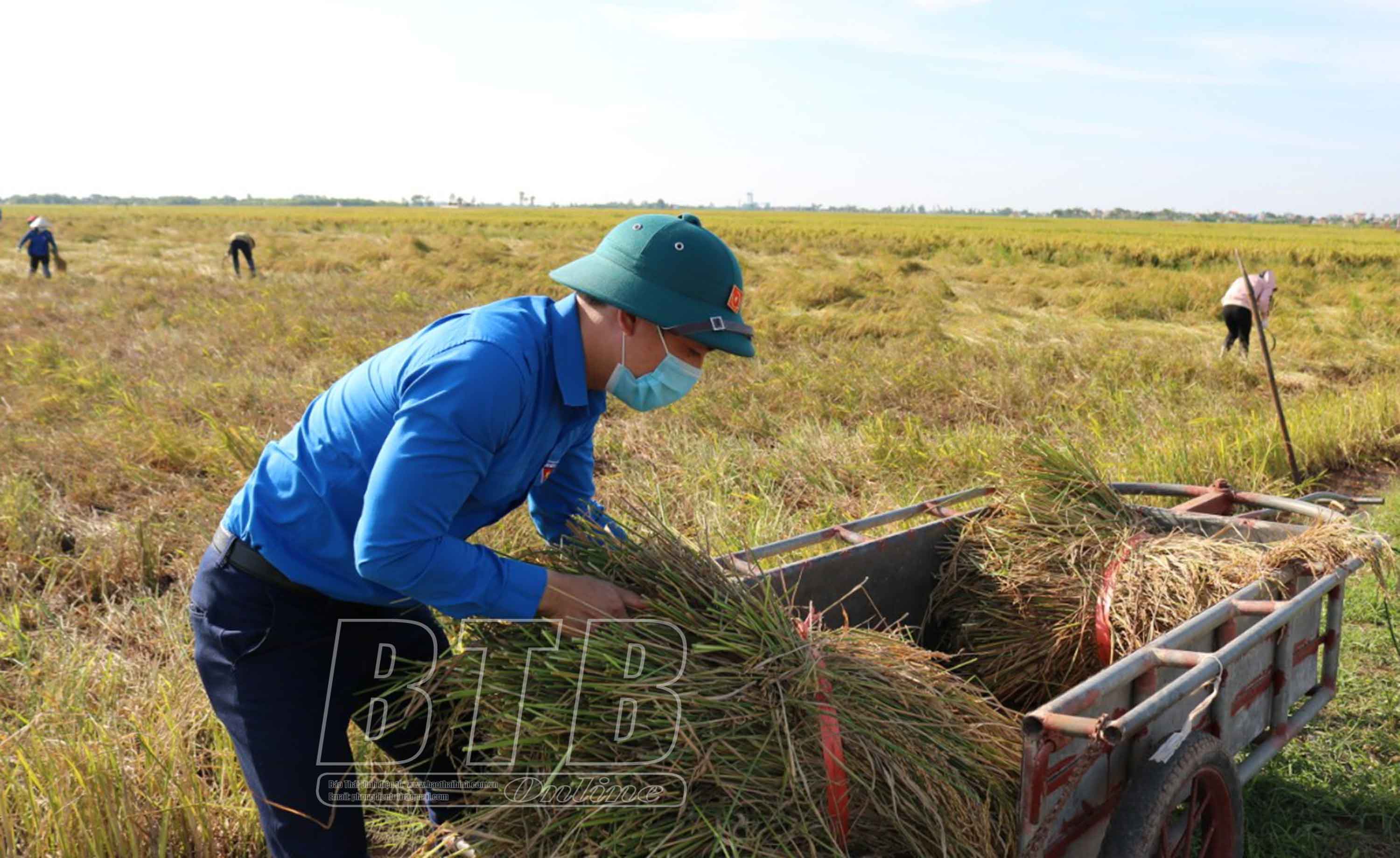Để khắc phục hậu quả do cơn bão số 7 gây ra và chủ động ứng phó với bão số 8, Tỉnh đoàn Thái Bình đã huy động hơn 2.000 đoàn viên, thanh niên tham gia giúp nông dân gặt lúa.
