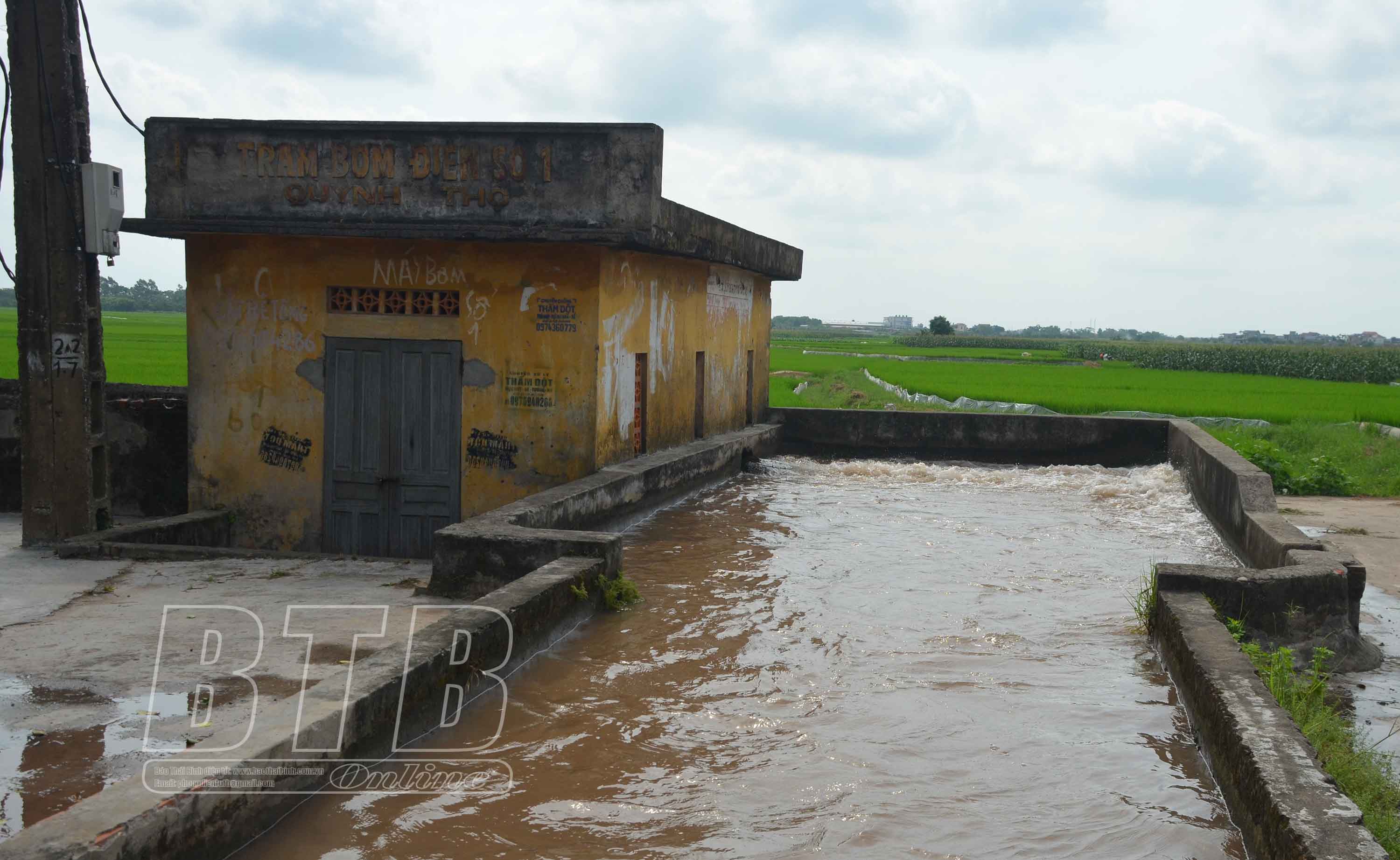 Trạm bơm xã Quỳnh Thọ chủ động tiêu úng khi xảy ra tình trạng mưa kéo dài. Ảnh: Nguyễn Cường